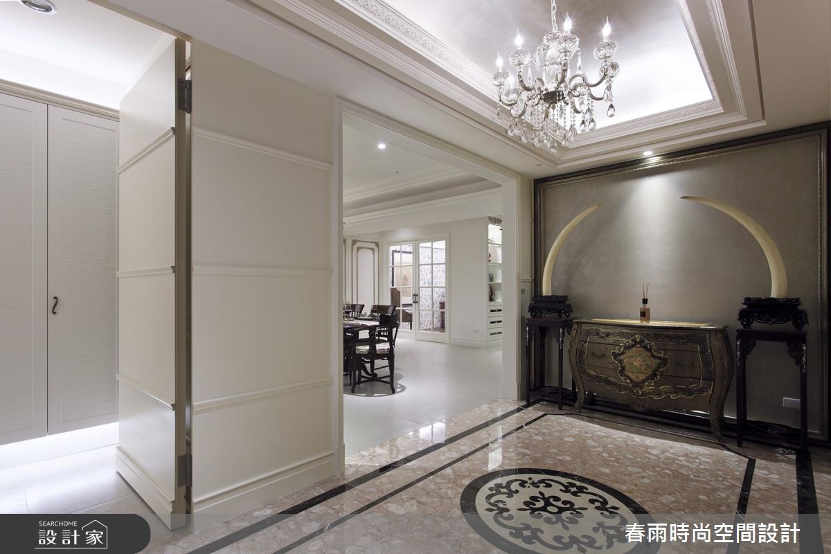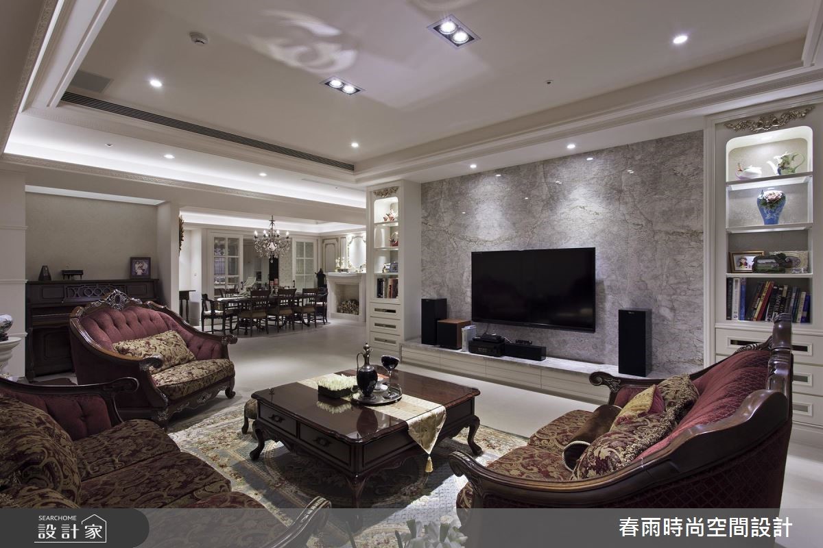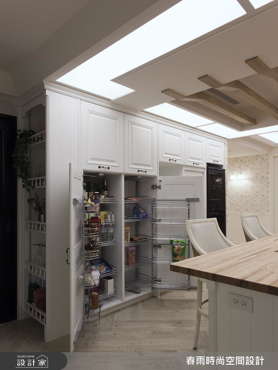 241平方米大宅,设计师依循屋主的收藏艺品,将空间发展成美式风格,并于厨房加入女主人期待的乡村风情,在经典风格、完善机能的佈局之下,开启一家五口的梦想生活,快跟着小编一起来看看吧! 客厅区,于沙发墙悬挂高级油画,採古铜金画框镶边,凝聚厅区的视觉焦点,而周边从沙发、家具、布艺到线板修饰等,皆呼应了相对应的建材及色调运用,型构大器端庄的画面;餐厅则在仿壁炉造型的两侧,给予东方风饰品及音响配置,结合着无所不在的金色线板语彙,型塑无违和的东西合璧场景;厨房内,则转换成另一种质樸的乡村风情,不仅将热炒区、轻食区相互独立,也暗藏大容量的收纳柜体,无论是墙面或中岛,均注入了比预期更多的置物空间;书房,规划了长跨距的木质书墙,不只容纳诸多藏书,更创造犹如英伦图书馆的经典味道;寝卧以高雅的紫色定调柔美韵致,并赋予加大的更衣间,除了整合梳妆檯主题,更让柜体呈现细緻的分门别类,完善处理夫妻二人的衣物收纳需求!小編的最愛在门片、拉手等小地方,也充满着复古手感,设计师藉由专属定制的风格,让家的每一吋细节,都洋溢着浓浓的艺术品味!