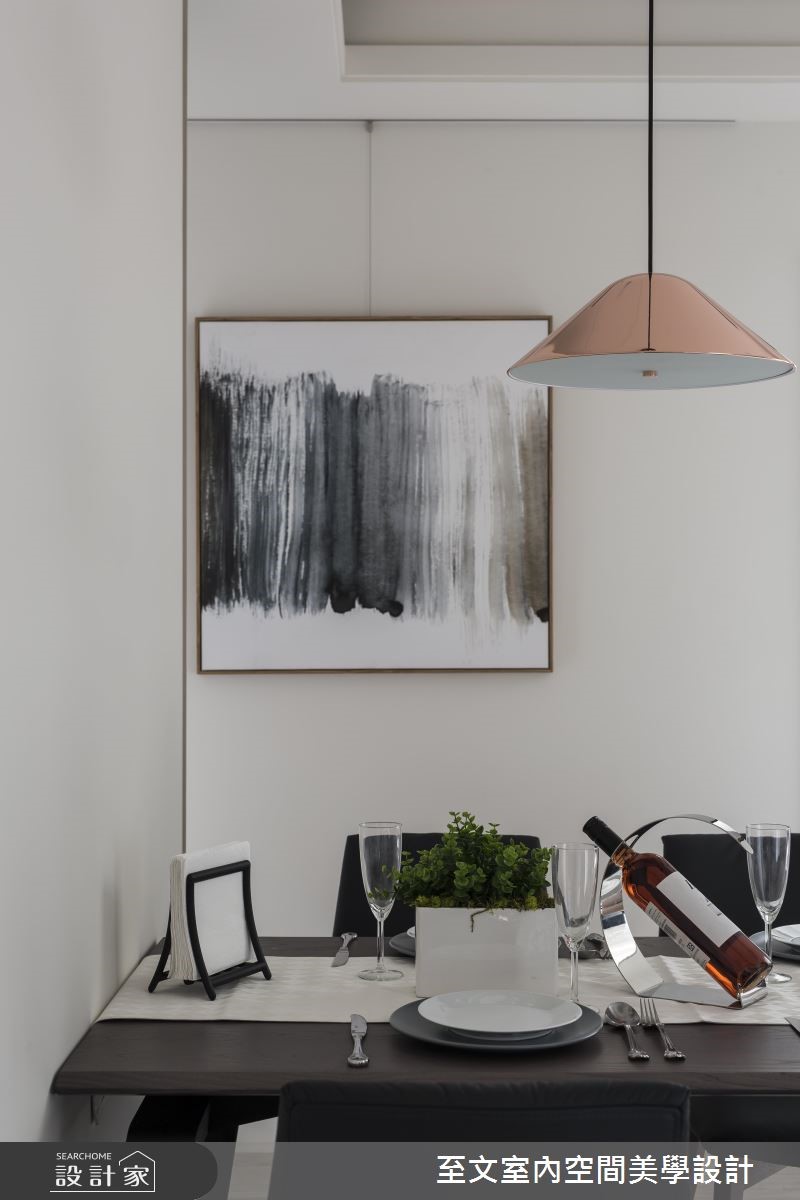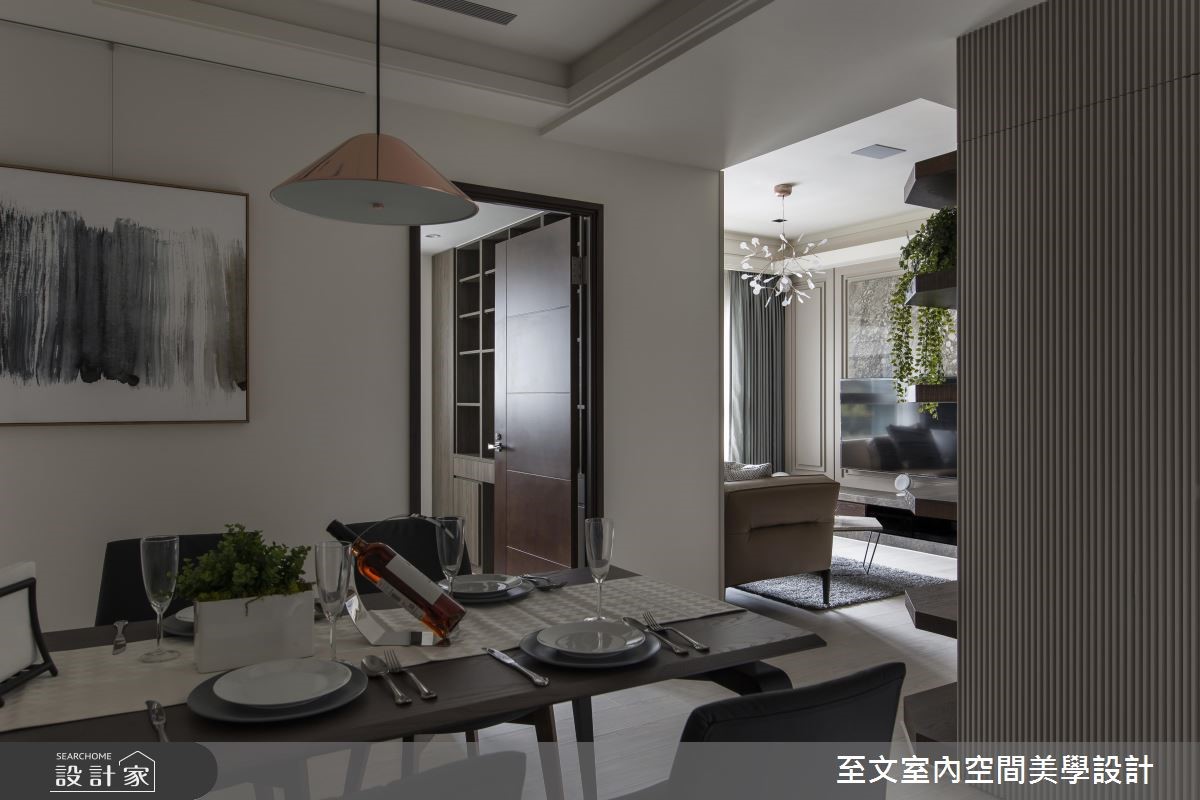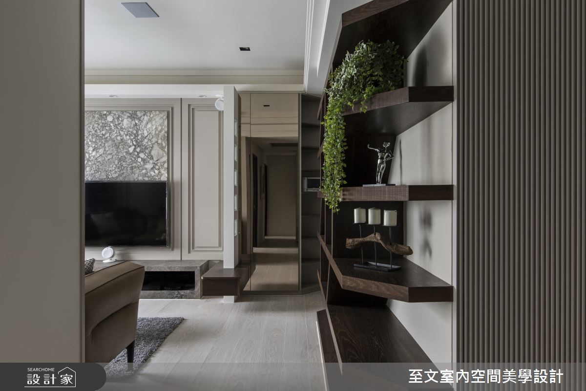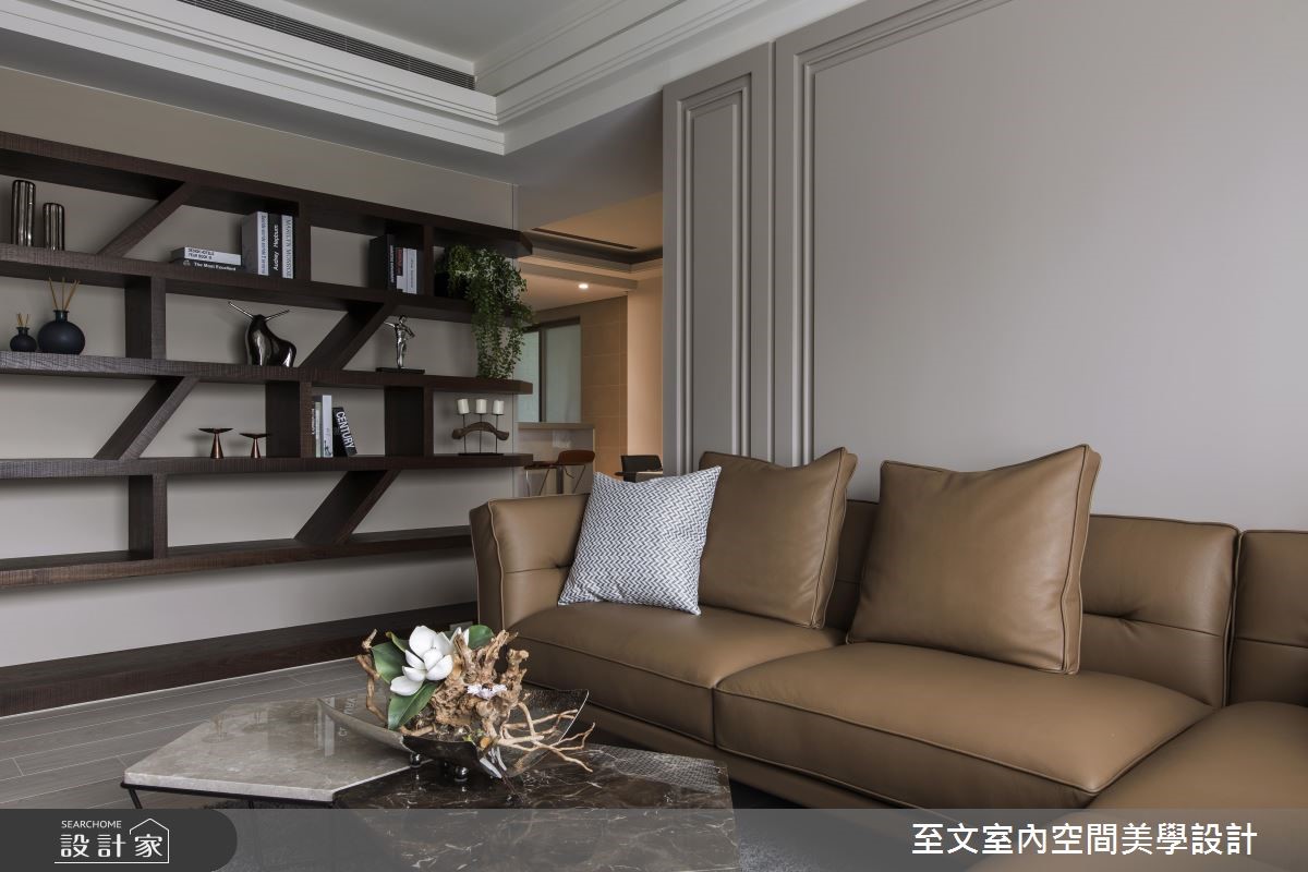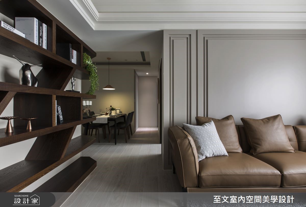 81 平米的现代风家居,设计师保留好採光、格局方正等优势,并挹注润和的大地色系作为主调,搭配精緻建材与展示规划,营造令人赏心悦目的空间视野,快跟着小编一起来看看吧!步入居宅,于入口处规划美感与穿透感兼具的隔屏,搭配镜面墙设计,延续开阔的空间感,成为家人们返家时沉澱情绪的宁静场景;厅区内,则透过大地色系作为主轴,以醇厚褐色调沉静心绪,搭配窗面纳入温柔採光,呈现温润恬静的氛围,电视墙则採用大理石表现视觉质感,佐以立体的线条刻划,让主墙表情更显深刻,并在客厅立面安置一面展示墙,加入开放式的层架设计,随时提供屋主展示与收纳的生活情趣,而天花上方的一盏造型吊灯,也提供了照明之馀的艺术装饰意义;餐厅区,则回归洗鍊的纯白基底,与客厅形成开放流动的动线,并在墙面加入极简画作的妆点,让人文气息呼之欲出!小编的最爱卧房床头加入沉静低调的皮革,并切割出有质感的线条,搭佐灯光的静谧烘托,平淡中彰显细腻,释放美好的纾压氛围!