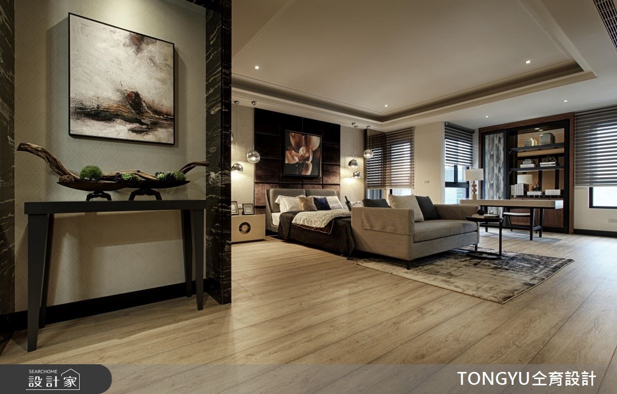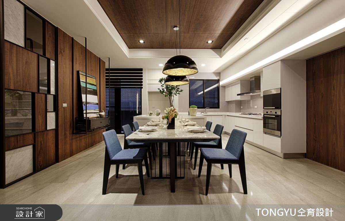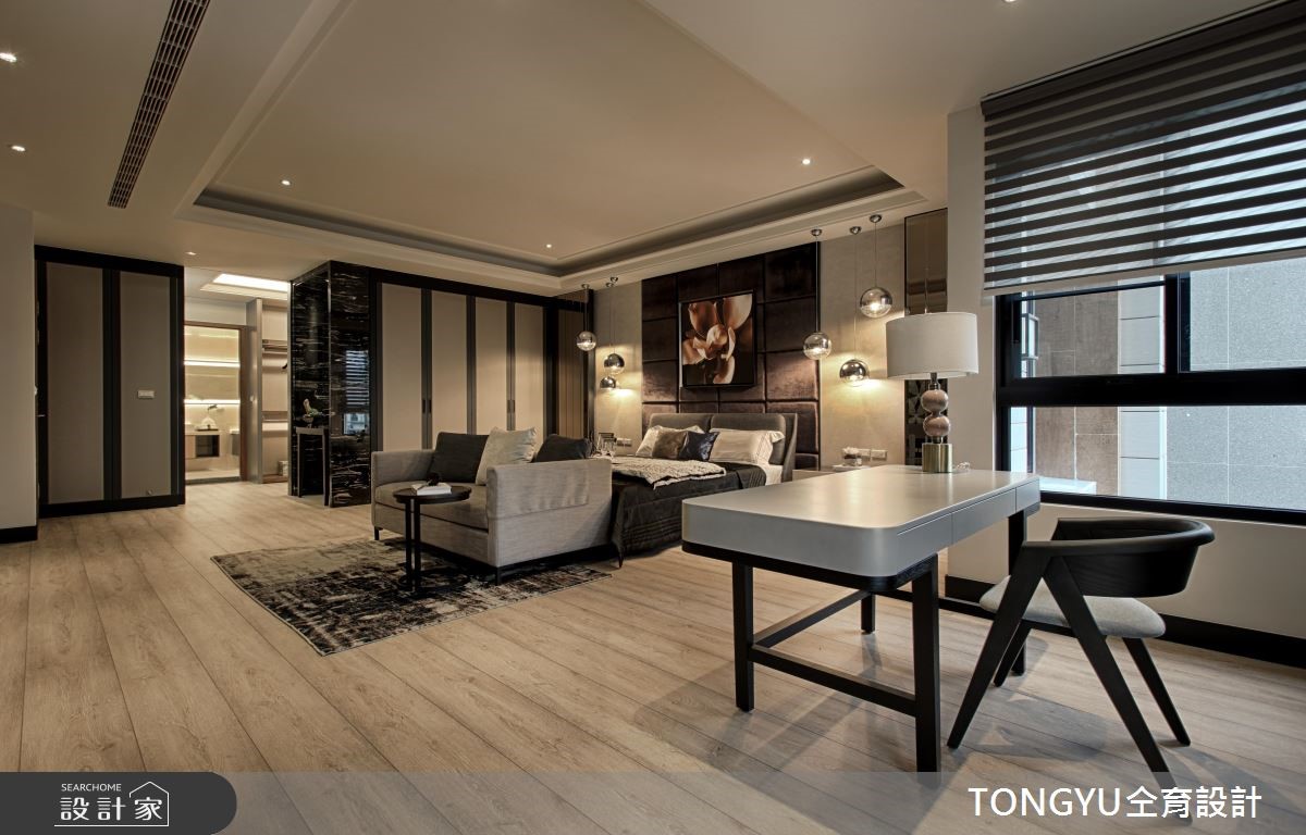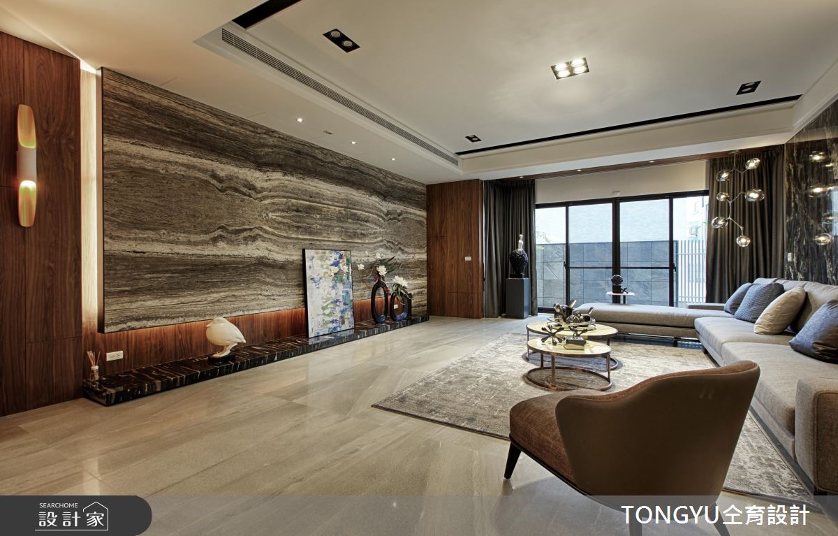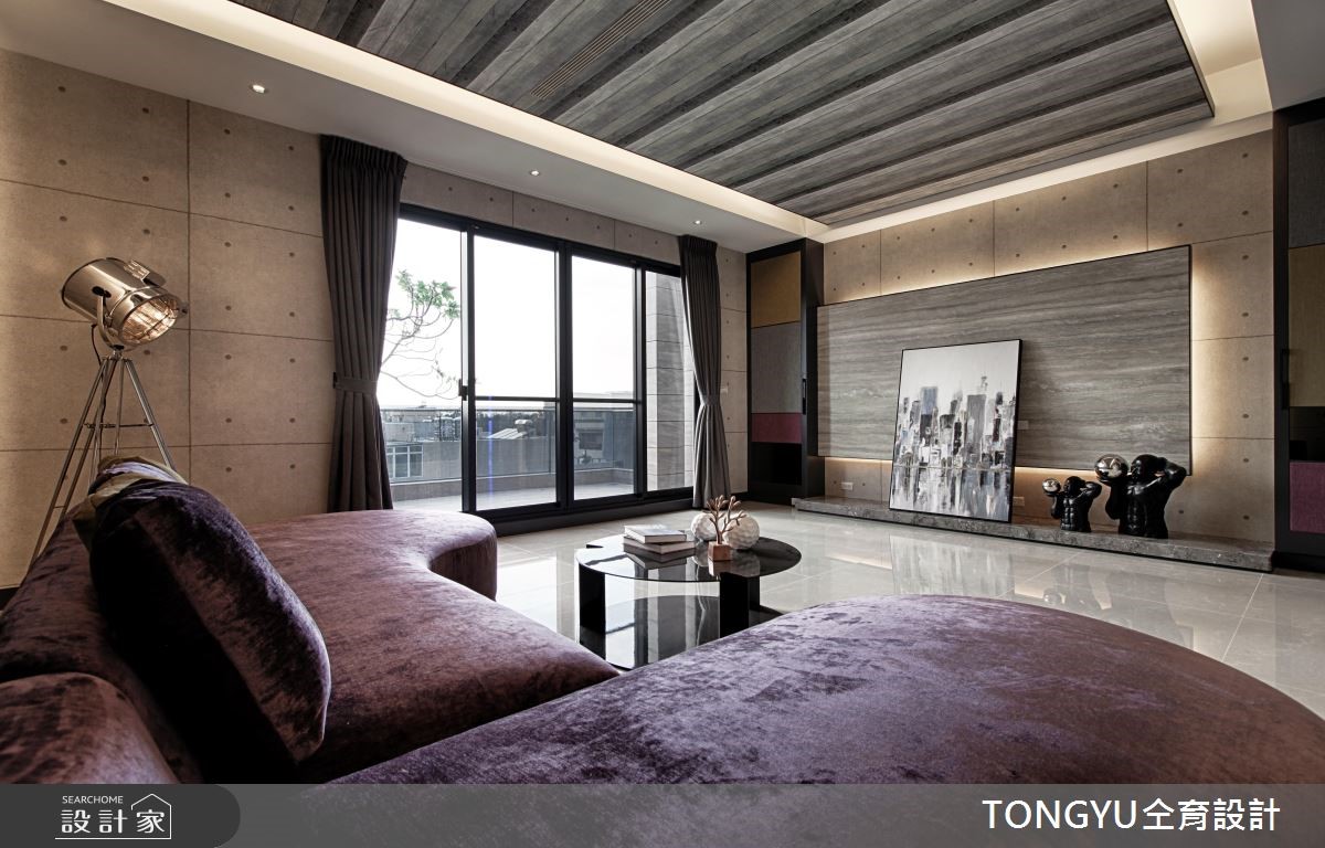实品屋必须要顺应屋型、凸显建案的优势,本案座落于台湾南部地区 463平米的独栋楼,仝育设计团队以开放公领域及机能完备的私领域设计,打造相当适合三代同堂的规划。一楼以开放式设计串连客厅与餐厨空间,以「东方美学」为定调,沙发背墙与电视墙带着沉稳大器纹理的大理石建材搭配木元素,相互衬托自然宛如中国水墨画的人文气息。由于空间足够,因此规划了完善的 L 型厨房与中岛吧台,与用餐空间产生紧密的连结。设计师更在别的楼层设计了起居间,让主人的同乐生活更具隐私,更能依照喜好打造富有个人特色的风格,清水模墙、木作与紫色绒布沙发的混搭散发衝突美感。小编的最爱主卧由于动线宽敞,结合了书房与小客厅的实用机能,更利用宛如玄关的艺术品过道与更衣间串连,成功打造视觉层次。