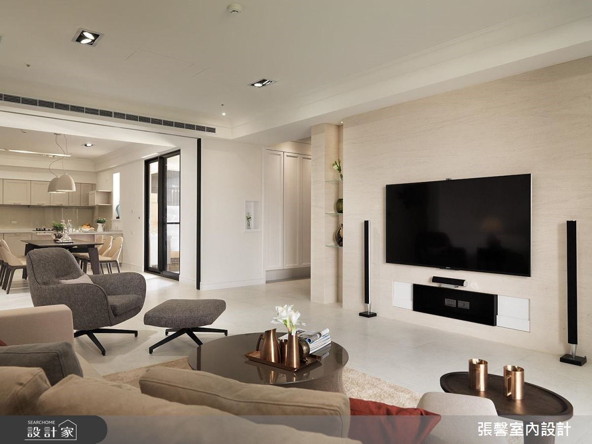 美式风新成屋以穿透式材质保有开阔,点缀大理石、镜面和线版吐露低调奢华的优雅气息