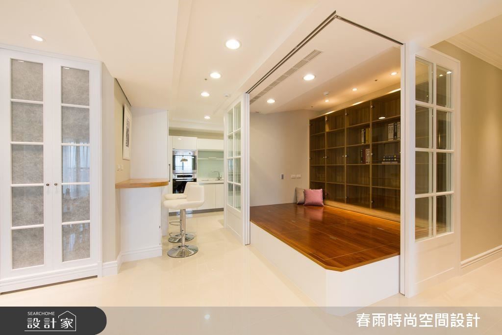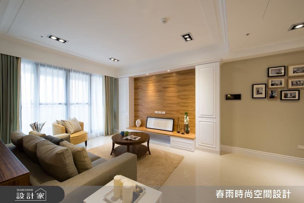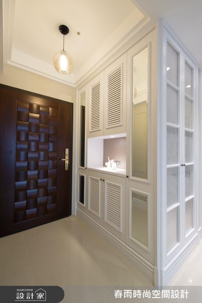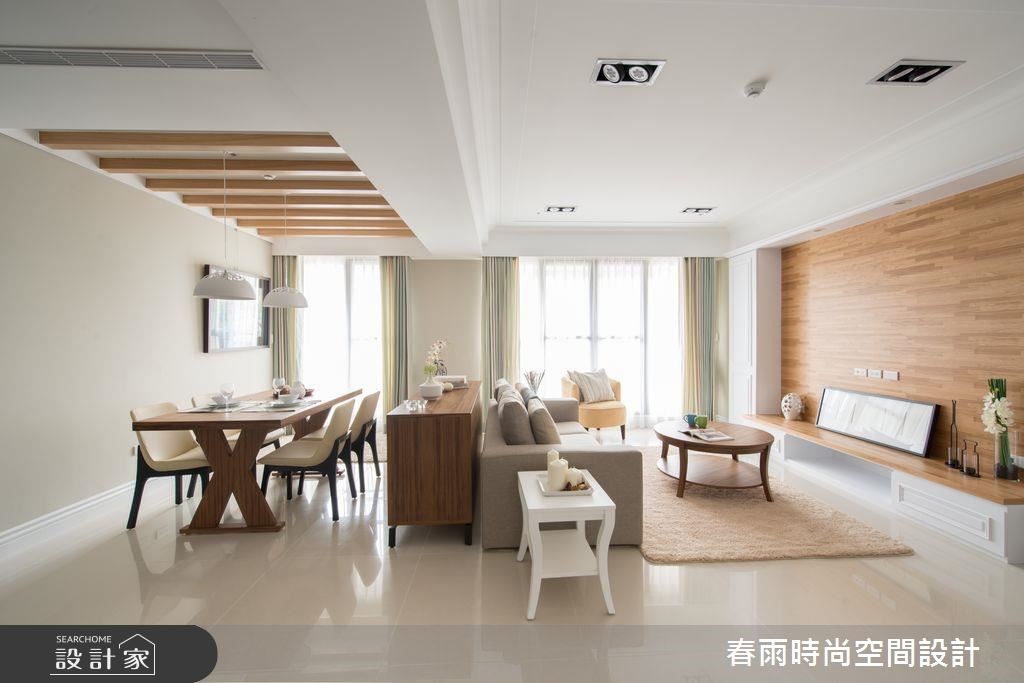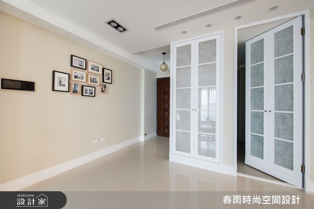 106平方米新成屋虽然坐拥优良採光,但却有着墙面锐角相对的「稜角煞」以及畸零空间问题,且看春雨设计如何调和乡村与日式休閒风格,给久居海外的单身屋主一个在台的归属。玄关收纳柜以纯白百叶与简约线板带出美式乡村风格,接着更改客卫格局、取消不必要的淋浴空间,为厨房争取收纳与吧台桌机能,同时用格状门片切齐储藏空间。原先有着稜角煞的畸零区域则被规划为多功能和室,利用大面积收纳展示柜完整修饰缺陷,垫高地板更加入升降式和室桌,玻璃推拉门更可随需求与隐私操作。将客厅与多功能餐桌置于採光最明亮的区域,巧妙以大樑做为开放空间的分界,并利用餐柜取代沙发背墙,创造零阻碍视野。大片雾香色墙面、木製电视墙以及木樑营造了乡村风格的温馨与休閒气息。小編的最愛主卧床头加入细緻绷皮增添视觉立体度,搭佐壁灯光影烘托,显出空间气质,步入更衣间内,更给予大量实用柜体安排,呈现出精品店般的高级质感!