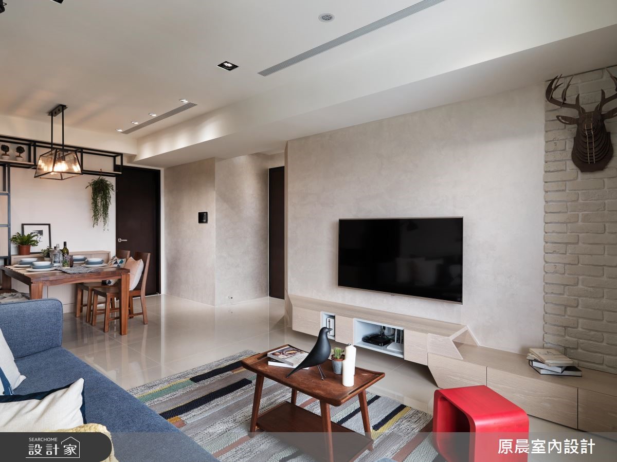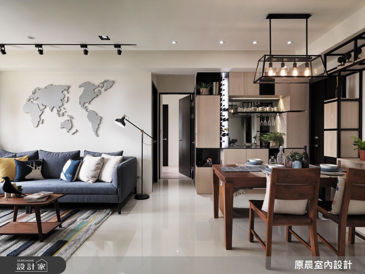 两个人的 81 平方米现代风居宅,设计师挥洒轻盈色彩,型构温暖舒适的基底,同时挹注自由的旅行元素,让空间演绎自我风格,温暖生活中的每个片刻,快跟着小编一起来看看吧!室内加入利落简洁的线条,佐以明亮素雅的配色,并刻意于电视主墙加入特殊涂料,运用手刮的纹理增添自然质感,一侧加入文化石点缀,补足视觉平面的层次感,底下配置一体成型的视听柜体,让收纳更加轻而易举,客厅则选用自然不做作的家具摆饰,为净白的视觉空间,点缀了几分俏丽质感;餐厅、厨房呈现开放型式,串联使用尺度及机能,并采用透空柜体塑造简洁风貌,加以黑色铁件勾勒,搭配餐具、艺品与照片等装饰,凝聚立体深刻的柜面表情;居室内,透过大面积开窗导引光线,烘托满室明亮,搭配床头的块面切割,展现立面的迷人魅力!小编的最爱 客厅沙发墙面刻意大面留白,巧妙加入凸面的世界地图图块,型塑墙面的一大焦点,带出旅行之于屋主夫妻的美好意义!
