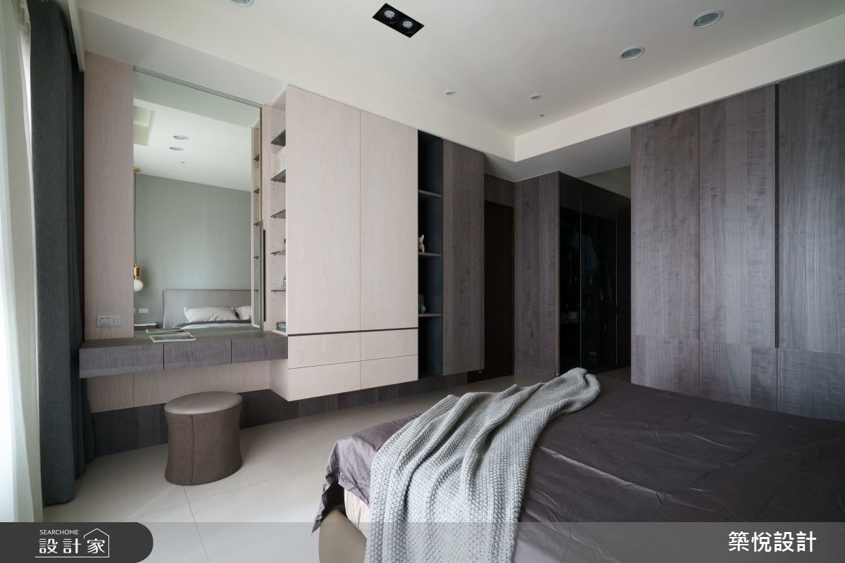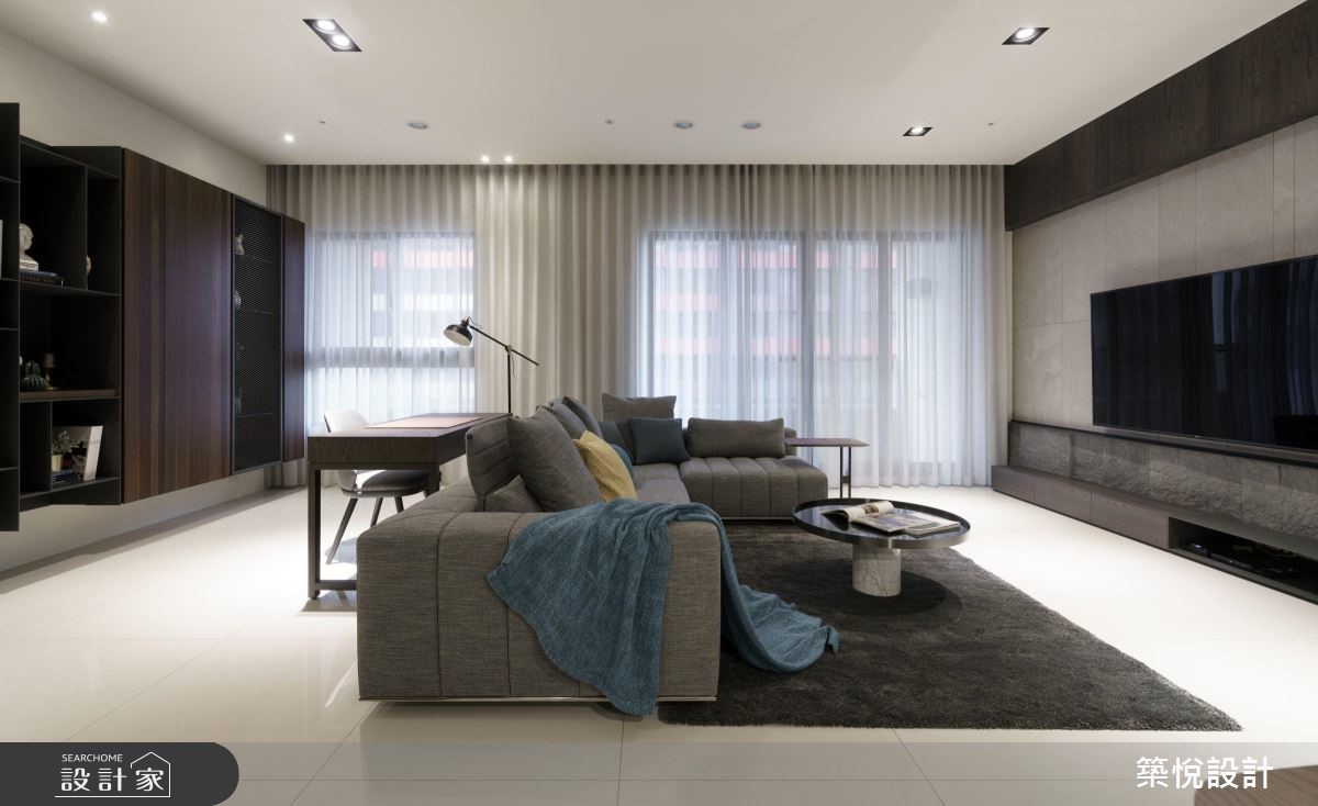 客变后格局还是有问题怎么解?电视半墙创造多元机能,主客卧对调优化动线,59.4 平米新成屋化身质感文青宅