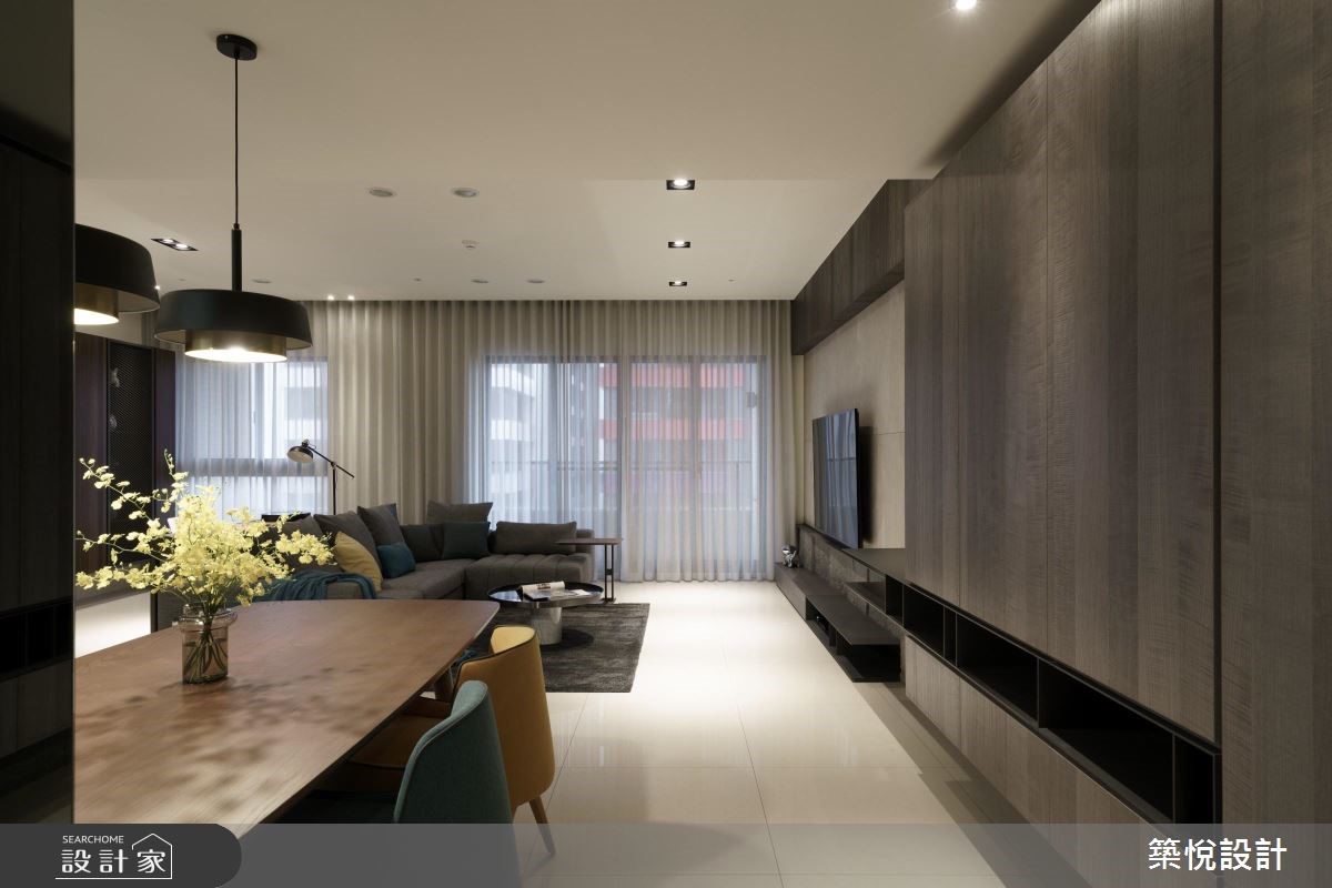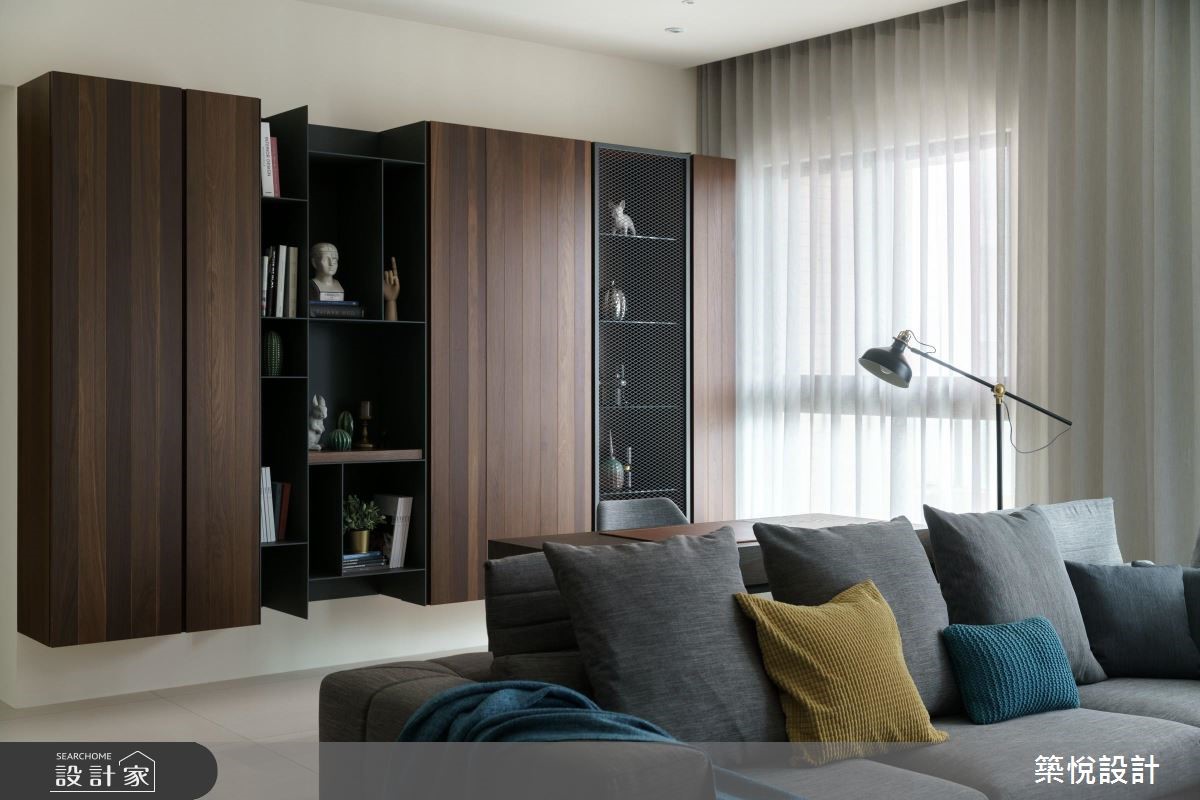 简约、时尚的 38 平方米现代风家居,设计师赋予大量而实用的收纳机能,并藉以简歛灰质、木调色彩,搭配灯光佐饰,调製出具有人文气息的优质生活氛围。格局配置为 3 房 2 厅的家居空间,公共空间採用开放式设计,融合客厅、餐厅、书房的多重功能性,并从玄关开始,以木质柜体设计向室内延伸,引领访客动线的前进,客厅、餐厨、书房处也皆拥有相当充足的收纳规划。厨房隐身于餐厨区的深处,藉由柜体、转角隔断的区分,既保留了空间的开放性,并可将厨房的油烟加以区隔,减少油烟逸散到其他空间的可能。卧室以明亮、简约为主轴,在设计师的巧思规划下,卧房内不仅拥有大量的收纳区,也拥有宽敞的更衣区、梳妆檯,也不影响居住者的睡眠舒适度。小编的最爱具有时尚特质,也不失温润舒适,设计师透过色彩、材质、线条的运用和搭配,为屋主打造出机能、美感兼具的现代风家居。