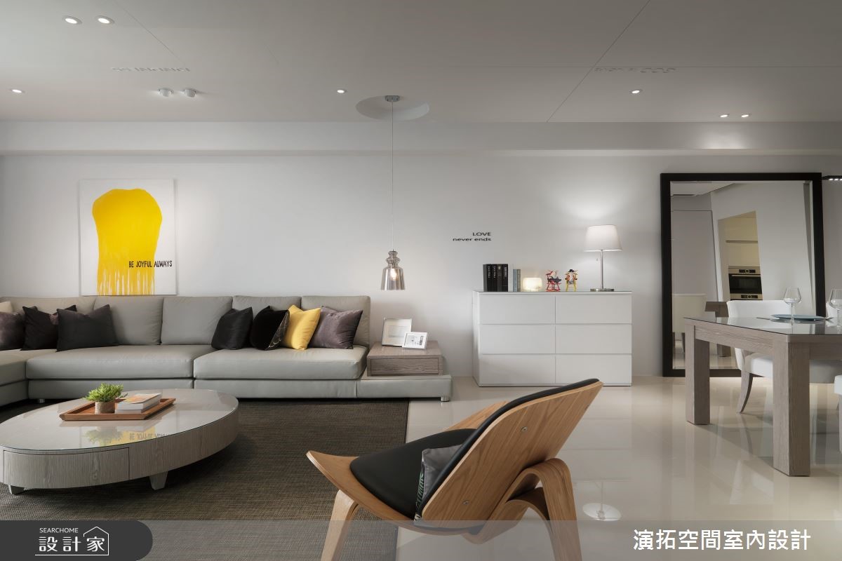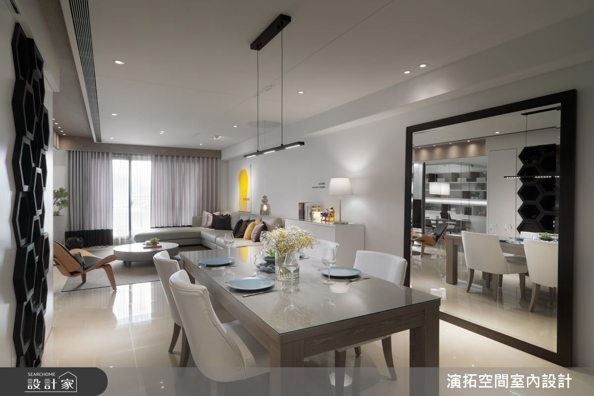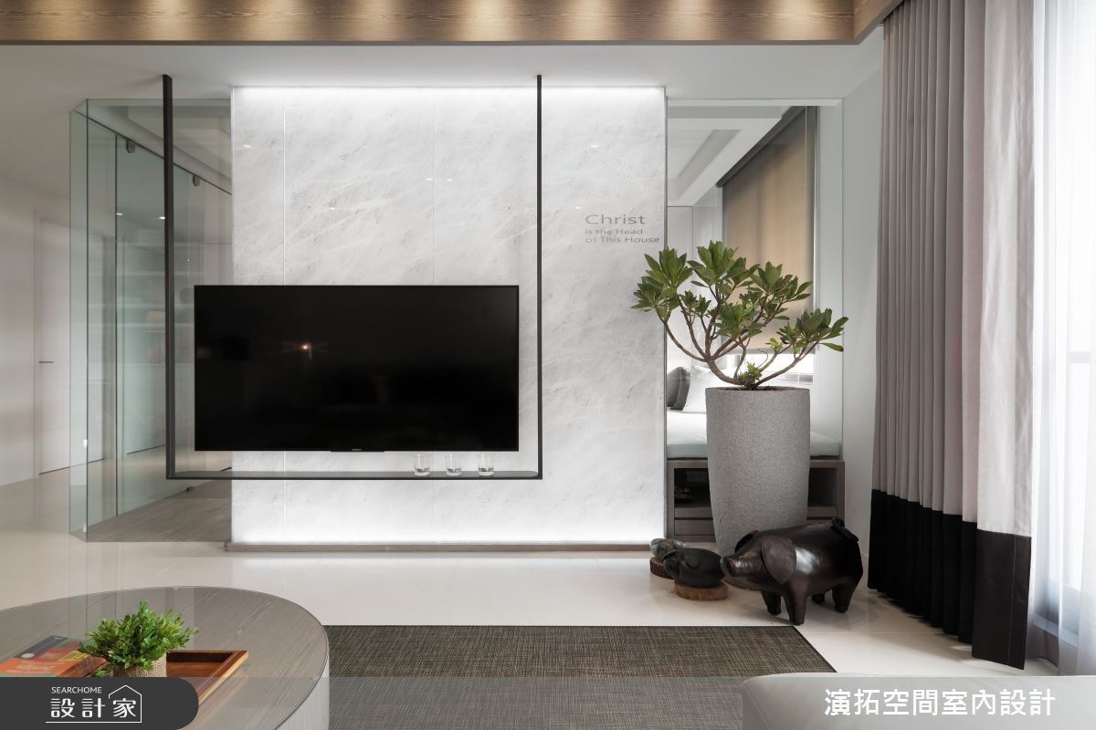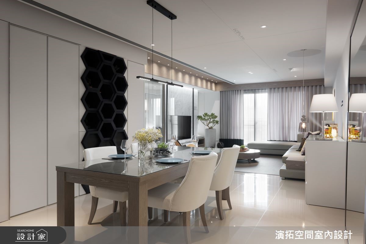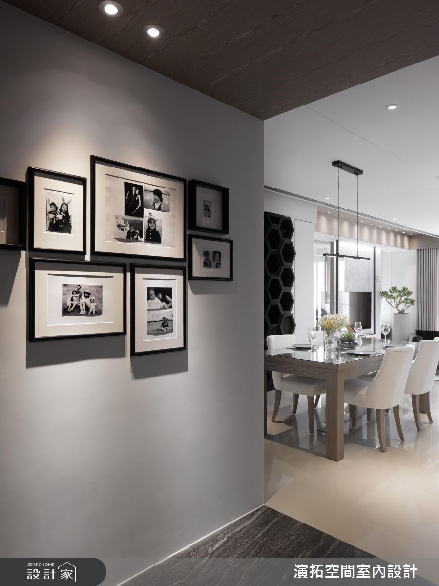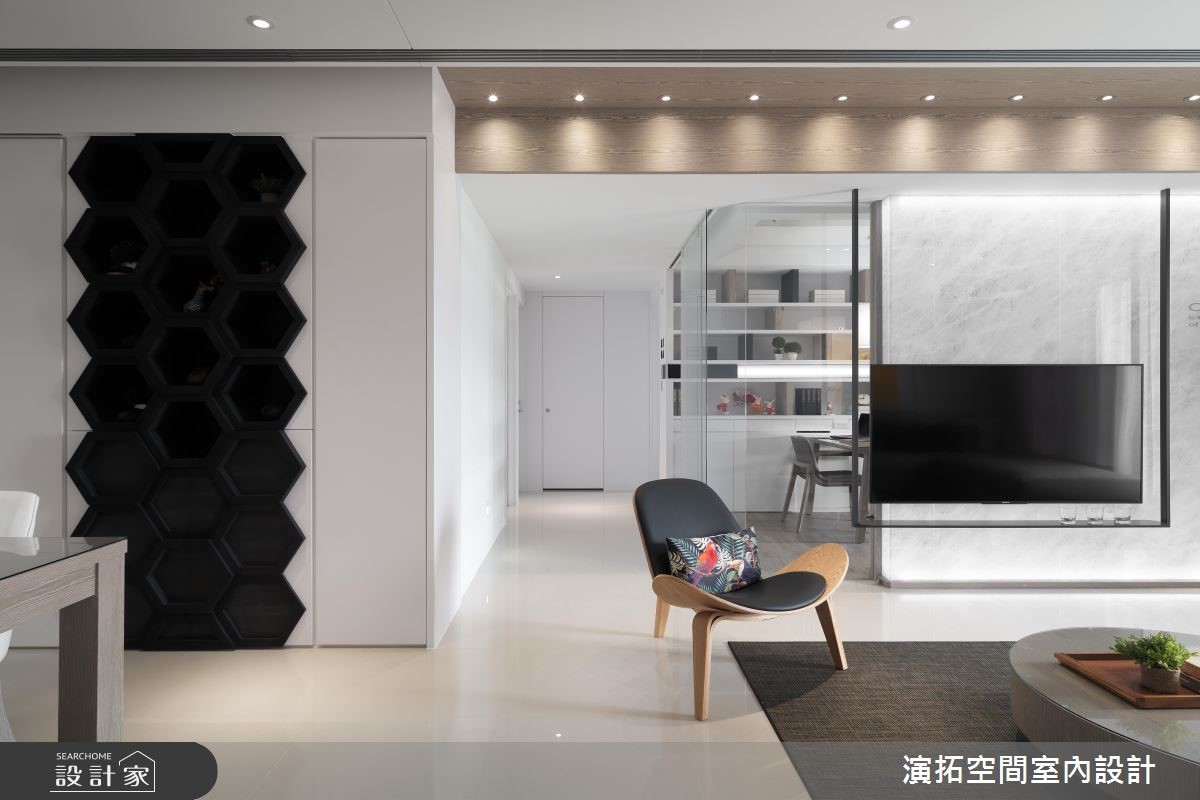148.5平方米的 4 口之家,由于业主一家非常信任设计师,在本案规划上,给予设计师极大的信任,并期望整体以简单黑白灰为主,而在经由设计师的巧思擘划后,空间除了展现有如美术馆般的摩登视野外,也备足了一切实用机能,成功落实一家子的好宅心愿,快跟着小编一起来看看吧!由于在预售屋即进行客变,考量到原有厨房没有规划电器柜,于是将玄关退缩,不仅多增设电器柜,也接至餐厅壁面的一整排收纳机能,将餐水柜、外出衣物柜等等一併整合;风格上则选用现代简约,透过极简线条、家饰妆点等彰显沉静美好,在大量留白之间,配合着日光的充分挹注,型塑舒适与透亮的气氛,电视则刻意以铁件做出悬吊设计,营造轻盈量体感,且藉由清透玻璃做书房隔断媒介,促成採光与视线的交流;餐厅区,除了配置客製化的造型柜体,也特别规划大幅镜面,不只让空间感串联穿透外,也透过此镜面望穿不一样的居家风景;寝卧内,承袭着白色的清爽底蕴,并揉入线板雕塑,再透过抱枕妆饰点亮彩度,凝聚几分随兴休閒感!小编的最爱 当初书房隔断与主卧墙面刷色完成后,设计师到现场确认后觉得还可以更好,于是便自行吸收成本,将玻璃更换并给予墙面重新刷色,再造更具质感的视觉体验!