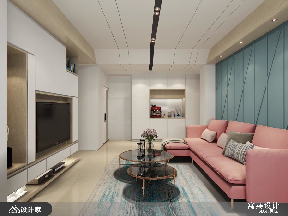 夫妻二人的小坪数新婚房,设计师于空间中加入屋主喜爱的明亮紫色,并延揽采光佳的优势,挹注舒适氛围,即便空间感有限,也利用巧妙手法的擘画,彰显小坪数的良好动线与强大收纳机能,快跟着小编一起来看看吧!厅区,设计师透过浅色调的妆点,运用柔和甜美的色调抚慰人心,并加以格局的方正配置,营造出明亮空间感,同时在沙发墙铺陈落落大方的粉绿色,带来清新的气息,透过与白色立面的搭配,拉大整体宽阔尺度,而令人瞩目的粉色沙发,则营造浪漫质感,予人甜美感受;并有鉴于空间受限,善用墙面空间,结合柜体做出强大的整合功能,无论是多功能的柜体兼客厅电视墙,或卧房内灵活做出收纳床规划,在小坪数内创造最高的使用效率,圆满夫妻二人的机能需求!小编的最爱 设计师于天花、墙面加入洗练的线条勾勒,将细节无形中融汇于设计之中,刻划居家场域的丰富表情!