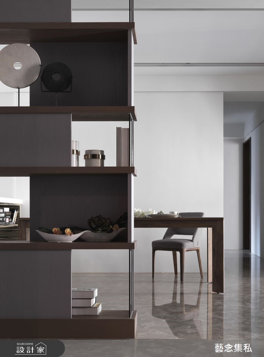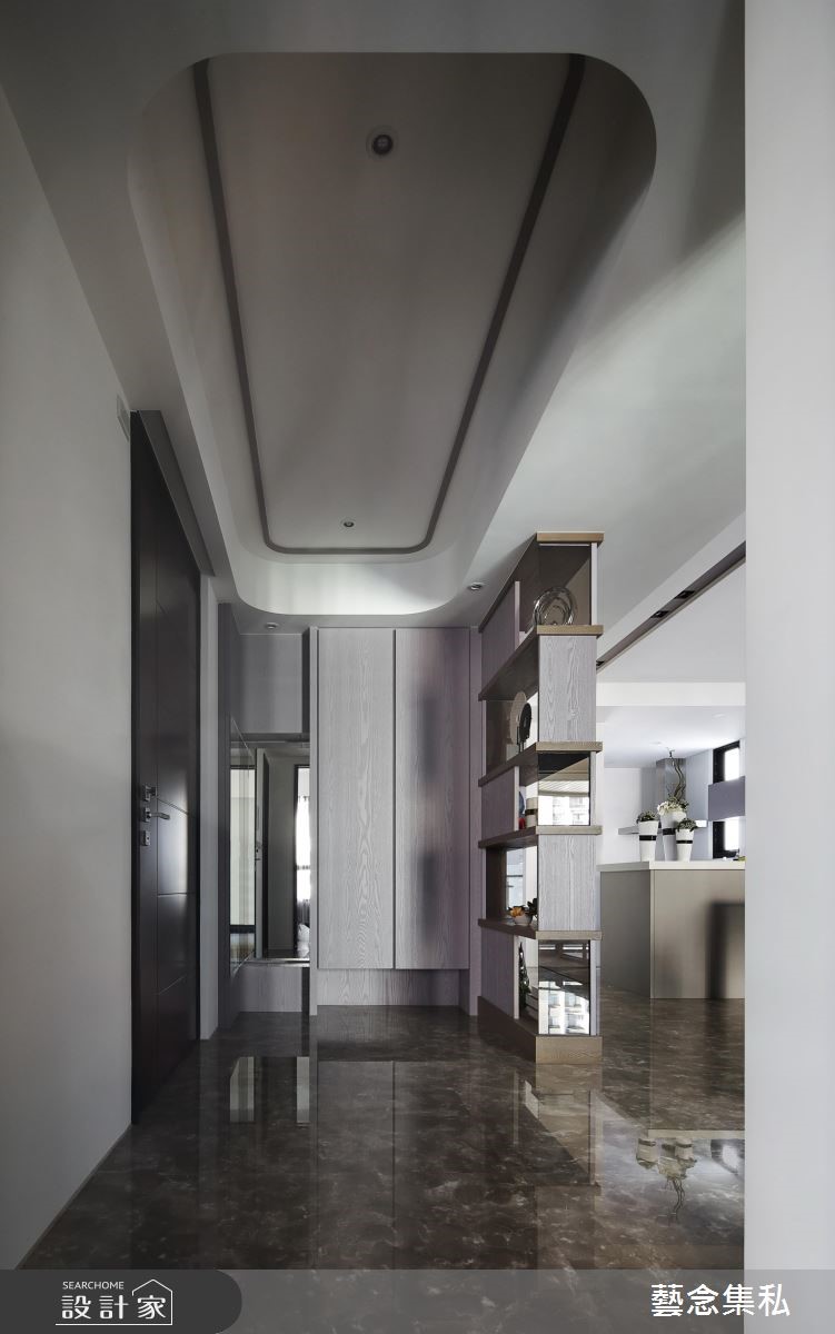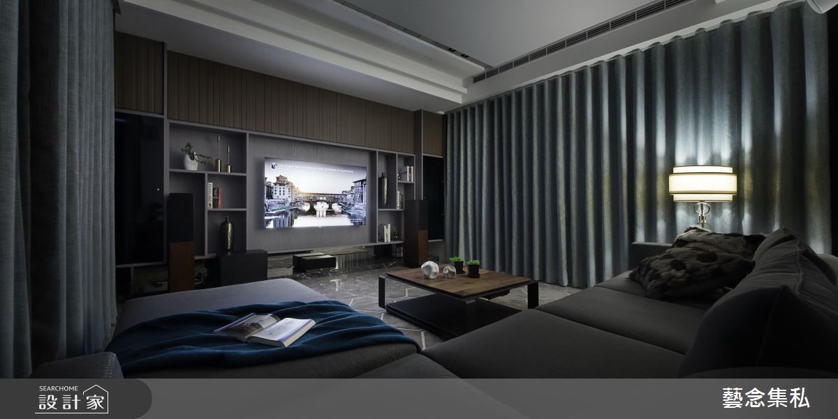 事业有成的风格男子,在不惑之年更清楚自己所需,除了平常与家人同住之外,更需要与自己相处、对话的时间,于是便在离家不远处,为自己投资了一间秘密基地,以优异的视听条件为装修需求,将此处设定为专属独享的电影院,而假日也可开放成为招宴请亲友的招待所,既能分享、又能专宠隐私,一举二得!男人四十而不惑,更能倾听内心的声音,了解自己人生所求,对于自己的私人小基地提出「专注比例、展现男子力的风格」等大方向,设计师在不更动原有格局的前提下,为了满足屋主想要视听室的需求,选用吸音窗帘布降低空间声音的反射,并且以咖啡色木皮佐藕紫色展示架,精準的色彩比例调和下,淡化装修修饰的痕迹,让人在享受视听娱乐时,得以专注而不被干扰。「男性主导的空间通常给予大方向的思考,因此设计师的工作除了定调空间风格,更要留意细节。」依循原有格局,俐落的线条擘划天花,整合空调、灯带与开放式客餐厅的定义,并精準的铺陈木作、烤漆、茶色玻璃等纯粹的建材元素,为空间谱出富有细节、及饶富品味的画面,精心铺陈男子随着年龄越陈越香,同时更具有个人魅力的特色;在善待自身后,同时不忘照料家中成员,原有格局既有的四居室,同样透过独特的配色比例,与进口墙纸配搭,成为不输五星级酒店的度假别墅,等待着妻子、儿子及长亲一同共聚天伦。小编的最爱玄关以弧形天花修饰,综合生硬的天花板线条,并利用木皮与紫藕色阵列组合的柜体,虚实交错间得以摆放收藏品,让人一进门就能感受具有主人态度的品味风尚。