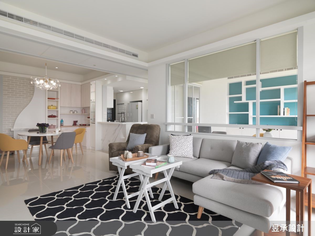 99平方米3 居室 2 厅,设计师替室内挹注清新自然的北欧风,同时保有足够的收纳机能,以及宽敞舒适的空间感,并在合理预算之下,进行格局重整、材质色彩的全新配置,为屋主打造出既符合需求,又能让孩子快乐成长的家,快跟着小编一起来看看吧! 为了提供孩子们安全活动空间,设计师将格局重新整合,并挹注简约线条,结合落地窗采光及餐厅的文化石壁炉,营造舒适、无压迫的生活景象;格局上,则拆除书房局部实墙,采局部镂空设计,加入清玻璃处理,让视觉不至于感到压迫,也串起场域视野,达到延展空间感作用;同时在书房内加设飘窗,让书房除了阅读也可做为临时客房使用;其次,将餐厅、厨房的实墙拆解,配置中岛型吧台增添使用弹性,促成具互动感的用餐情境;主卧内,不仅拥有双更衣室,走道侧更配置一间大容量储藏空间,将收纳机能化于无形,充份表现北欧风的简洁纯粹。小编的最爱 「原以为设计师的价格一定比木工贵,这是多数人先入为主的观念,但这次新家的设计,却从头至尾让我彻底改观。有天聊天时,得知小区邻居请木工装修的价格竟跟我请设计师装修的价格差不多,但我家的空间整体感、格局动线及收纳规划,明显完胜其他邻居,这让我觉得把梦想中的家,交给昱承设计团队来实现,是先生及我做的最好的选择。」这是女主人分享给设计总监的喜悦,除了见证质量,其字里行间的肯定和鼓励,也成为了设计团队创作与努力的原动力!