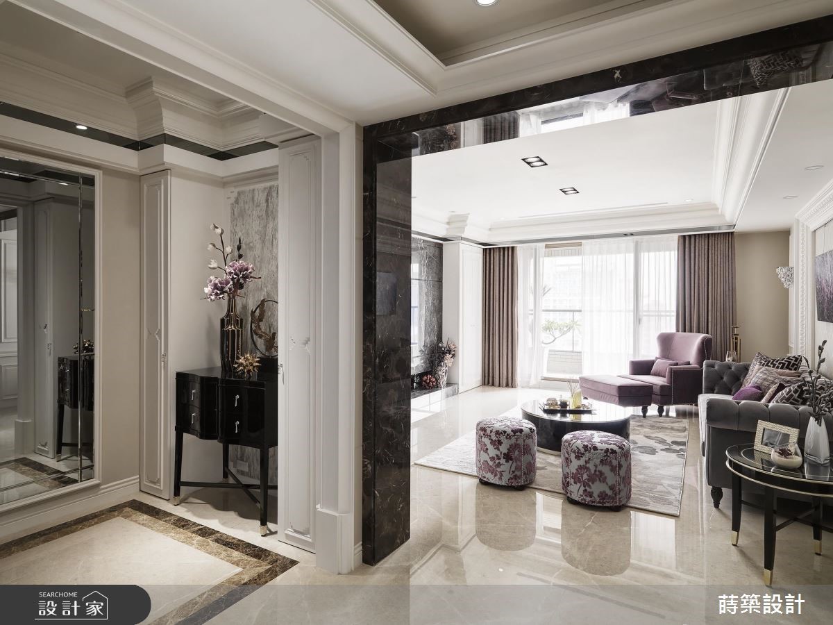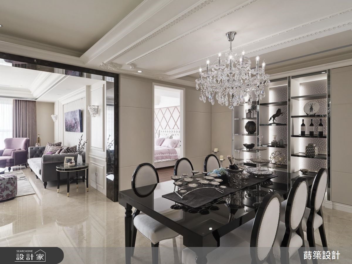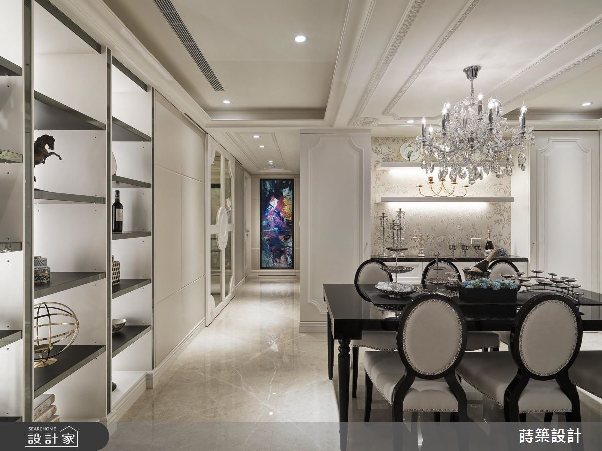 165 平米歐式古典大宅,设计师团队与业主讨论过后,在收纳机能的佈局上,决定利用柜体代替实墙,拉齐格线,减少畸零地的浪费,同时拓大主卧範围,不仅坐拥梦幻更衣间,更变出机能储藏室,打造出让女性惊喜尖叫的梦幻视野,快跟着小编一起来看看吧!玄关,藉由石材纹理铺陈墙面背景,搭配花艺与柜体型塑端景,带出充满质感的入口印象;公共领域,则选用轻盈的浅色系,穿插特殊石材及手绘油画,增添整体层次,沙发背墙则在细緻线板的框覆之下,显出立体画面,搭佐两侧闪亮的壁灯妆点,点亮居家质感;转而跨过黑色门框之后,可来到开放式的餐厅,让柜体贴齐墙线,并把畸零地变为储藏室,网罗美观与实用机能,透过大面积的展示风景,呈现华丽的时尚气息;主卧经由重新配置后,坐拥与客厅几乎一样大的空间,并在细节中体现巧思,可见到具有弧脚设计的展示柜造型,且带入线板修饰,让卧房在轻柔的白色印象之中,亦散发成熟且精緻的格调!小编的最爱 设计师针对屋主需求规划专属更衣室,除了充裕的置物空间,每道柜面、拉手甚至踢脚板都可见精工处理,成功打造出女人心目中的梦幻天地!