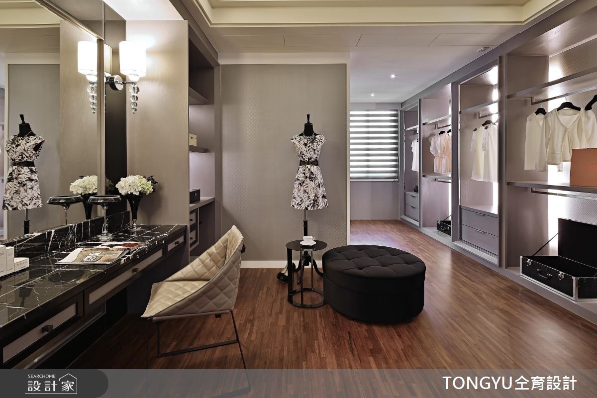 忙碌的都会生活,心中渴望拥有一处能沉澱、滋养心灵的静谧宅居。现在,以都会时尚做为设计灵感,拥有大面採光的优势,室内搭佐自然质感的木纹、俐落线条的石材,创造出低调却品位依旧的豪宅。整体以开放隔局为规划,随着户外光源的引入,形塑开阔舒心之感。电视墙以渐层的灰阶石材拼接而成,搭配素雅的布面沙发、圆形茶几,交织出内敛且非凡气度;餐厨领域透过细緻的镂空铁件屏隔,隐喻空间划分,黑色的中岛与橱柜门片,展现沉稳风範;藉由暖调木纹铺陈天花板,并以黑色沟缝的造型、嵌灯设计为照明,与深色厨具相互呼应,而原木质感的肌理延伸至餐厅区的壁面,同时成为共用卫浴的隐藏门,替冷调的现代空间挹注温润气息;餐厅桌倚靠整片落地窗,接引敞朗天光,且让户外的植栽、卵石等景致引入,形塑内外皆景的人文雅緻豪邸。小编的最爱私领域持续以简约的设计语彙打造,还创造一处宽敞的梦幻更衣室,开放展示的衣柜收纳,展现独特的时尚品味。