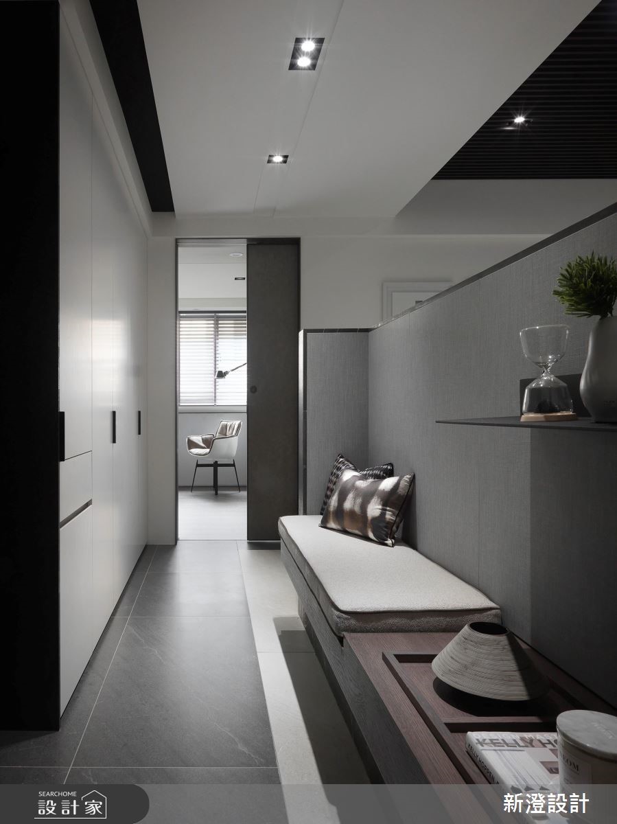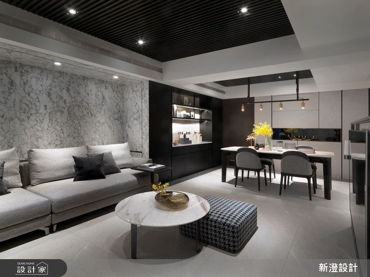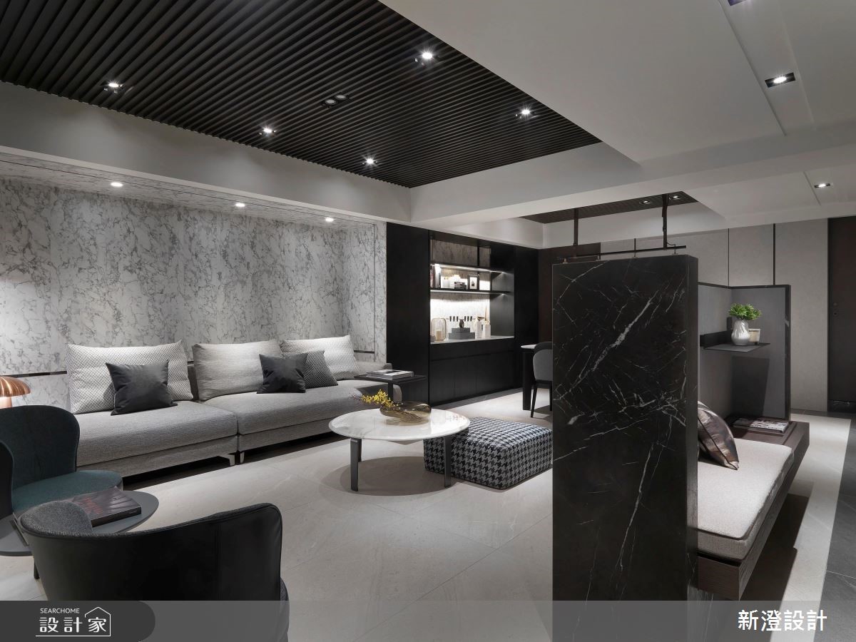 位于都市的106 平方米老屋就像其他年久失修的屋案一样,充斥着漏水壁癌、採光不足、畸零歪斜等问题,且看新澄设计要如何为一家 4 口打造简单俐落又不失温馨的全新居家环境!从入门就能看到设计团队的绝妙巧思,利用结合穿鞋椅的双面电视墙,抹除了特定玄关的刻板印象,左侧整排落地柜更提供了充裕的收纳空间。在完成防水工程的基础安全建设后,设计师採用经典的黑白灰色调,配合相应的建材与软件,创造俐落、简约且质感满分的视觉感受。电视主墙与沙发背墙的大理石色调相互呼应,天花板细密的黑色格栅造型成为两者的串连,更善用灯光设计与色彩搭配一举解决公领域没有光源的极大困扰。私领域延续公领域的设定,以低彩度与灯光设计让卧房瀰漫纾压、沉稳的感受。小编的最爱设计师应用巧妙的动线设计,达到俐落的视觉感受;色彩搭配更解决了採光问题,佐以时髦的金属元素,达到画龙点睛的效果。
