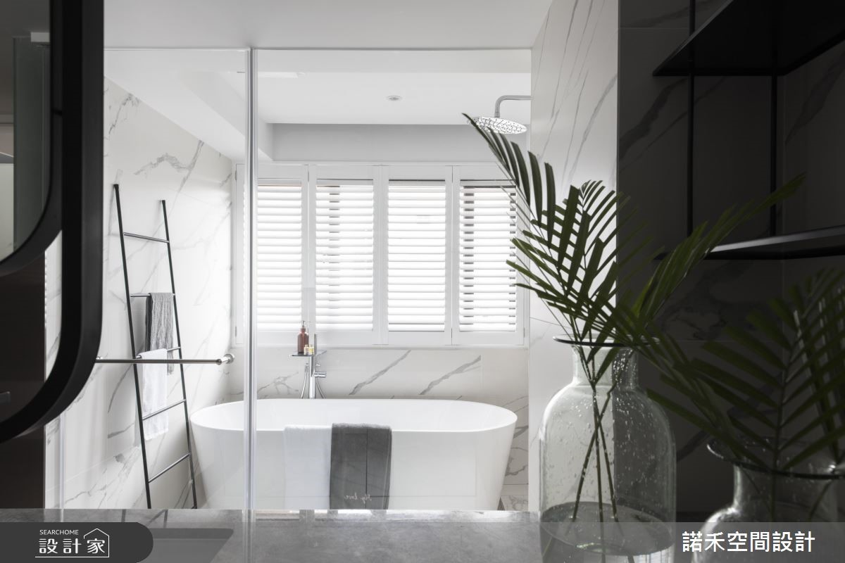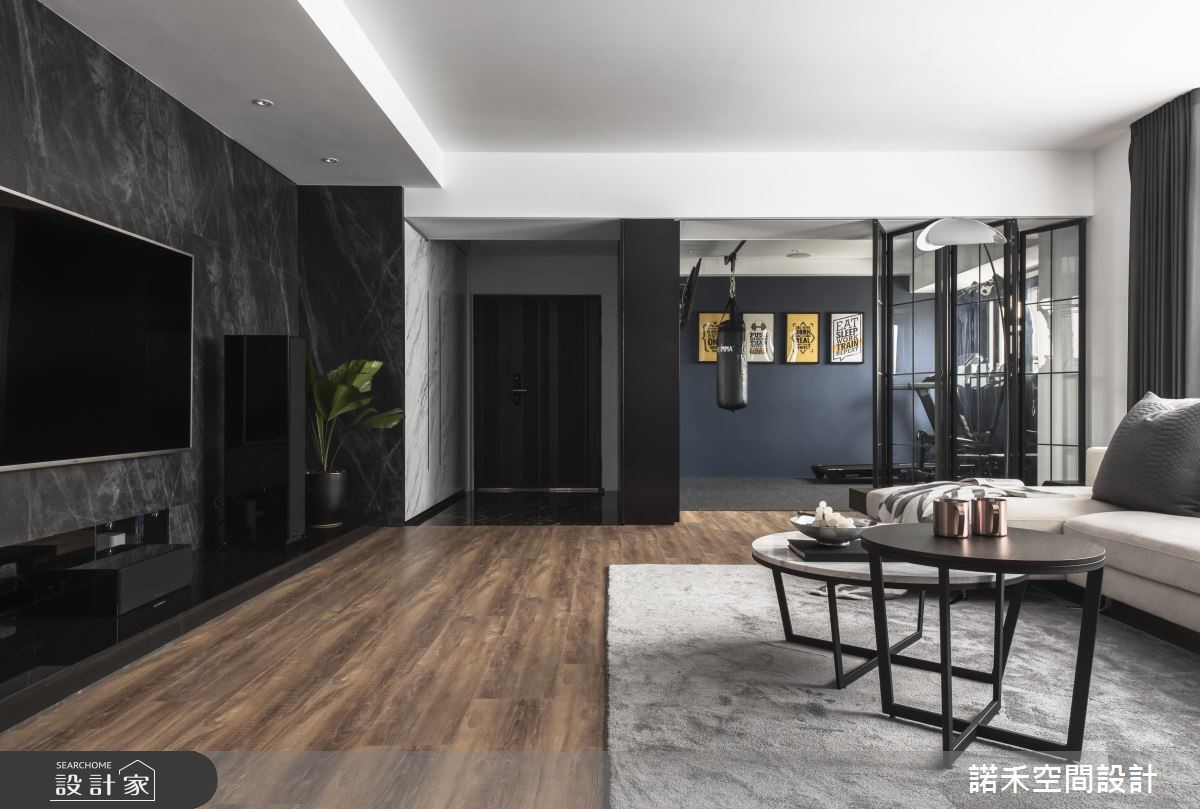 知名博主史黛拉和诺禾设计团队二度合作,为原本格局不良的 210 平米复层老屋改造后,化身为每个角落皆精致时髦的现代风宅邸。依据屋主需求,一楼公领域囊括客厅、餐厨、长辈房以及多功能健身空间,二楼则全然回归屋主的私人领域,包含主卧与私人工作室。公共空间以低彩度色系黑、白、灰为主,并在壁面与家具纳入大量时髦且备受女主人喜爱的大理石元素,佐以金属家饰,宛如专业的摄影棚背景。为求背景干净利落,设计师更利用纵向线条,将卫生间、居室入口隐藏于仿大理石美耐板后方,达到虚化开口目的。多功能健身房以湛蓝色调为主,并以铁件玻璃拉门与公领域产生区隔,随需求开阖自如。私领域皆以低彩度色彩为主调,设计师更抓住屋主喜好,设计了动线流畅宽敞的更衣间,以及干湿分离、附有泡澡机能的浴室。小编的最爱设计师更特别为女主人量身打造私人工作室,简约的线板搭配精致的家具与粉嫩色调,置入机能完备的飘窗与书桌,俨然成了少女般的小天地。