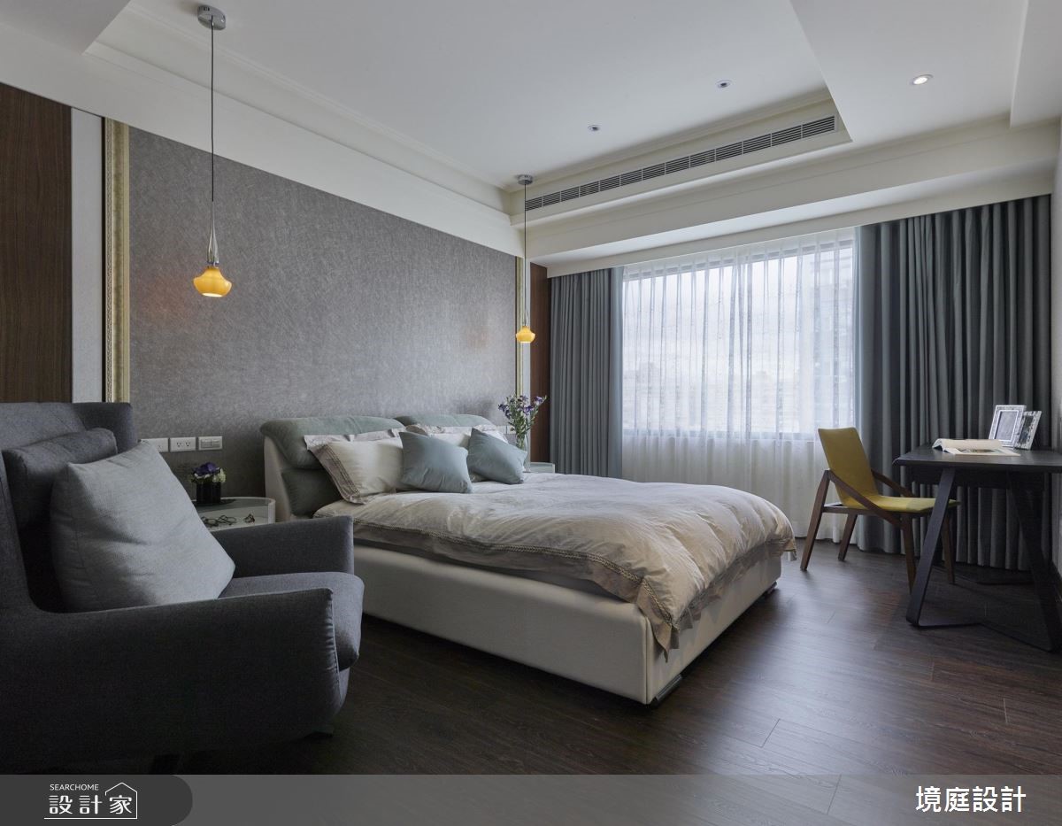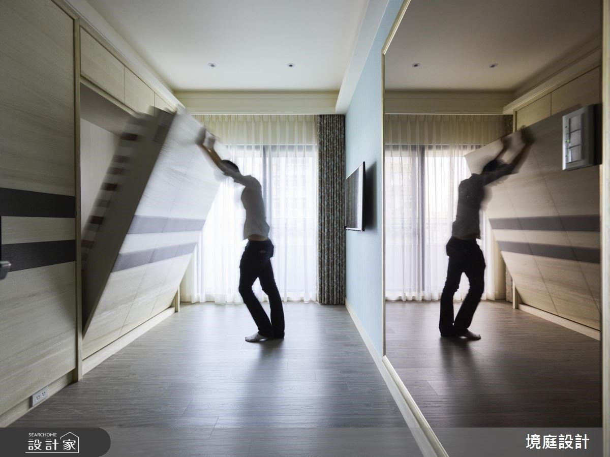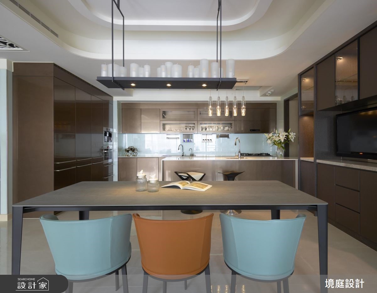 设计师透过精品混搭设计概念,引用多元建材营造空间层次,且同步悉心摆置陈设软件,衬出居宅的奢华风情,快跟着小编一起来看看吧! 玄关,采以金色大理石铺陈地面,立面则加入茶镜拓宽空间感,达到延长与拉宽尺度的效果,同时安排穿鞋椅机能,满足生活实用性;客厅区域,以沙发背墙挂画作为主要核心,发展出周边设计,并让电视主墙采石材做基底,拼接镀钛、茶镜等精致建材,创造时尚的多元层次;厨房采以开放式格局,别出心裁地以金属色泽定调,厨具面板安排不锈钢面板,透过材质堆栈丰富场域表情,天花更做出特别造型与客厅形成差异,定义不同区块的主题;私领域,依循男女主人的需求,规划双主卧型式,在床头分别铺叙金属质感壁纸或木质语汇,缔造各有特色的氛围情境!小编的最爱 同时规划一间多功能室,利用可掀式床组将机能隐于墙体之内,让空间使用更具弹性,美学与功能性兼备!