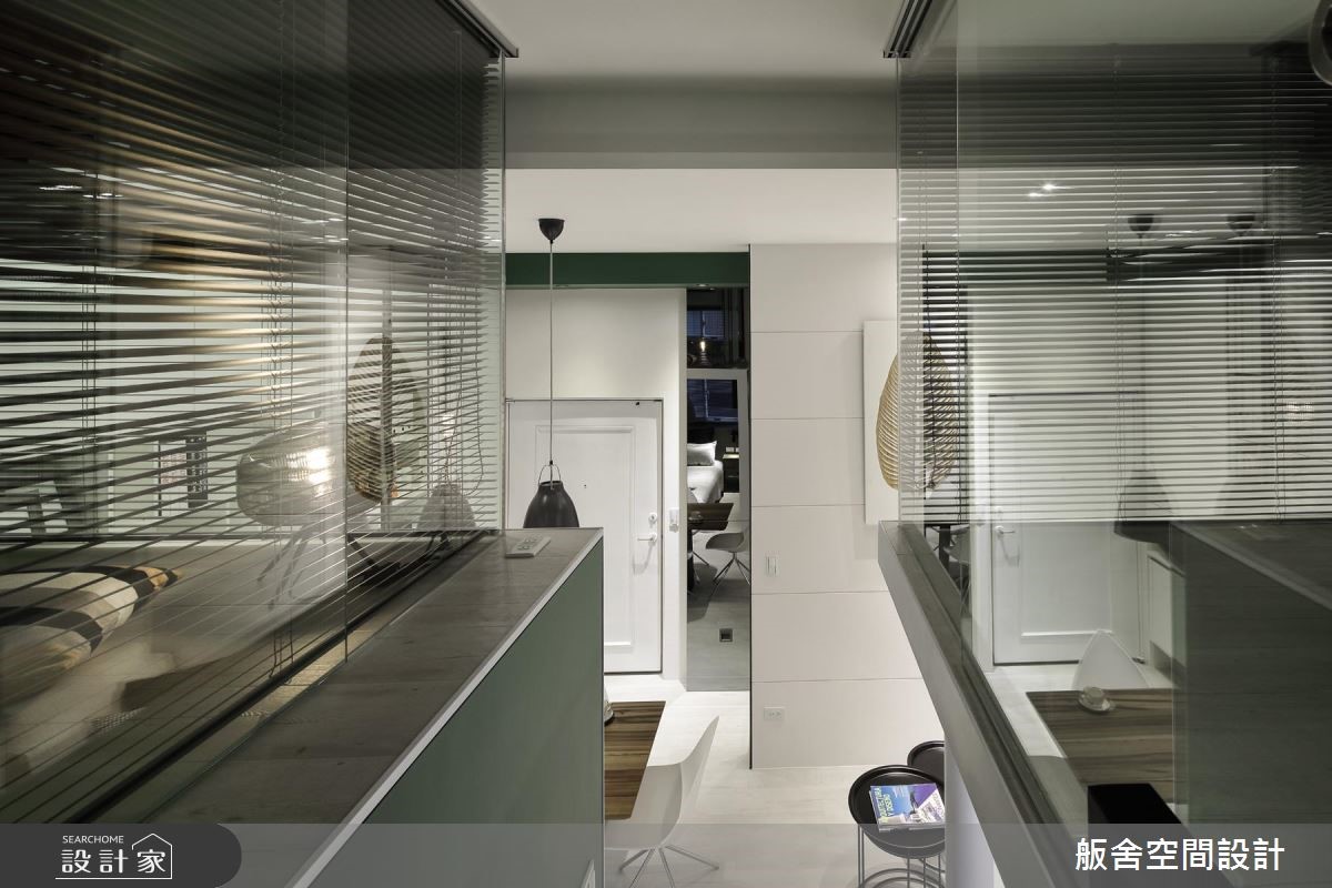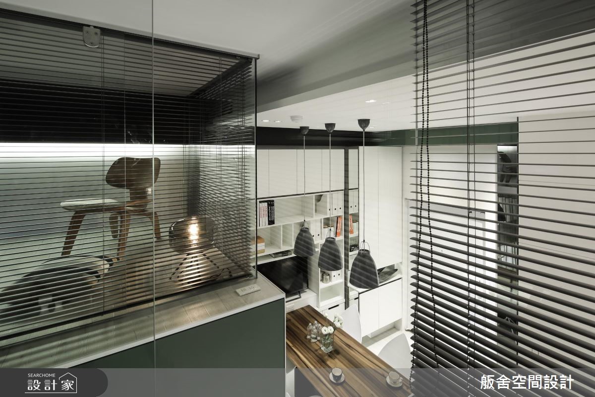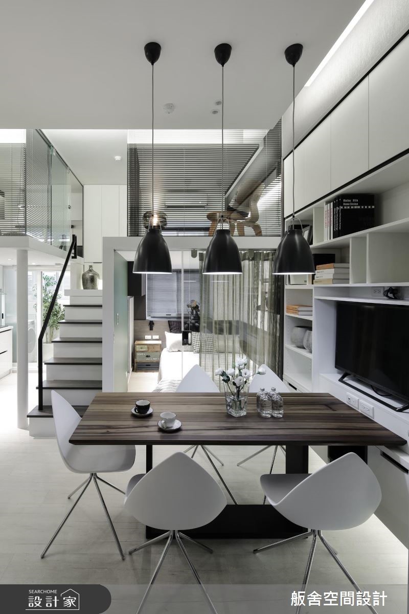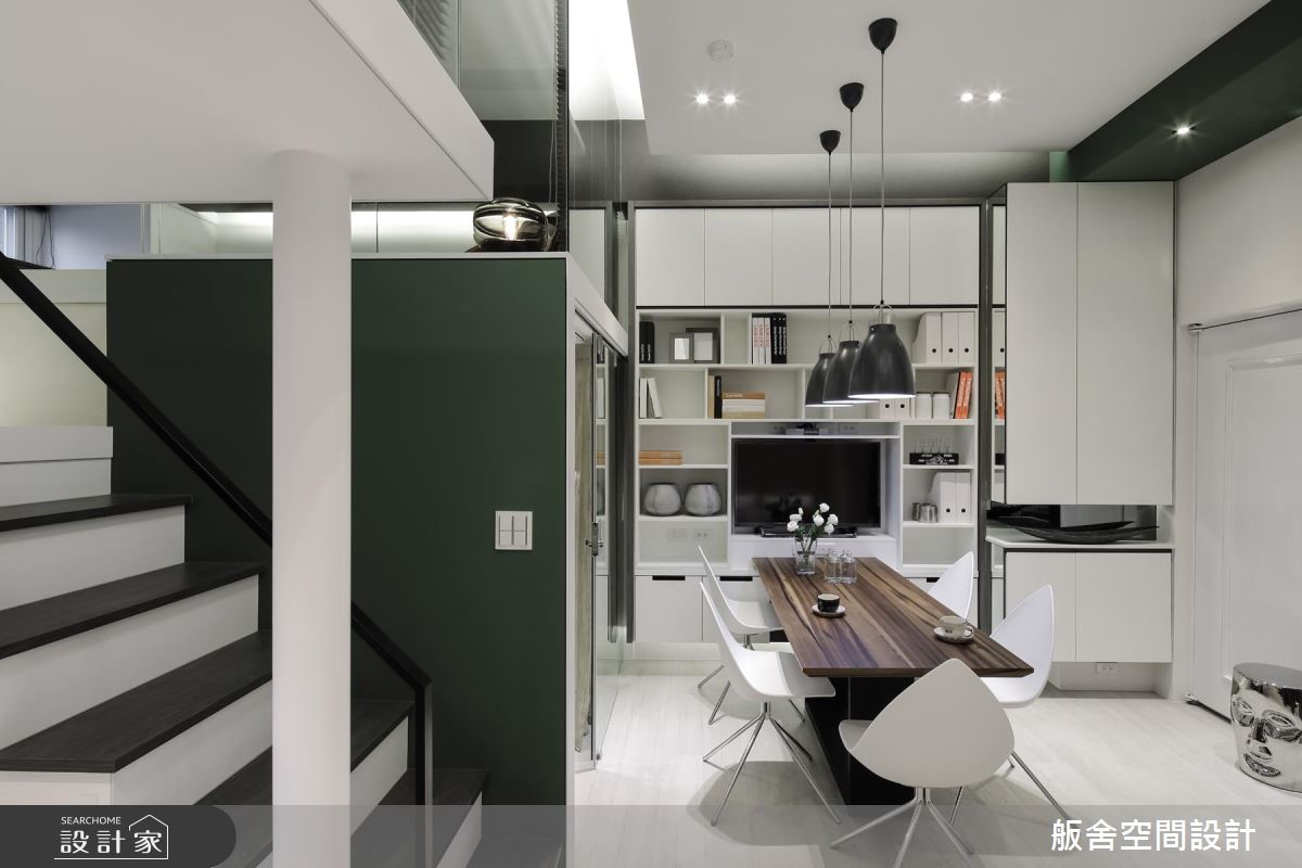 为了让孩子们能就近上课,因而将老屋翻新改造,在53平米的空间里,藉由跃层结构整并机能领域,以玻璃材质的隔断方式,穿透的视觉特性自然消弭压迫感受,更营造出流动、自在的室内氛围。整体空间以白色调为基底,天花板以渐层的视觉安排,搭配间接光源,让平方米有限的空间更显延伸、放大;为了让孩子们拥有良好的学习环境,以书柜、书桌为主要设计;公领域里,则将客、餐厅机能融合为一,电视墙与展示收纳柜整并,不仅让空间有效运用,更增添丰富的立面表情。楼梯两侧分别为厨房与主卧室,当后阳台充沛的自然光引入室内,映照在白色系的厨具上,厨房领域更显明亮、洁净;穿越门拱结构、推开玻璃门,则进入主居室,可在玻璃隔断墙挂上窗帘,就能拥有自己的隐私;上楼后,两侧分别规划孩子们的卧室,架高空间以及流动的光线,调和出舒心的家屋氛围。小编的最爱楼梯成了划分领域的核心,将主居室与厨房分开来,也成为楼上两间小孩房的分界点;垂质高度的空间安排,更是有智能的设计方式,容纳一家四口的生活型态。