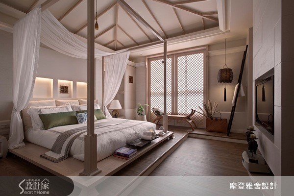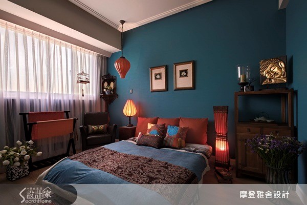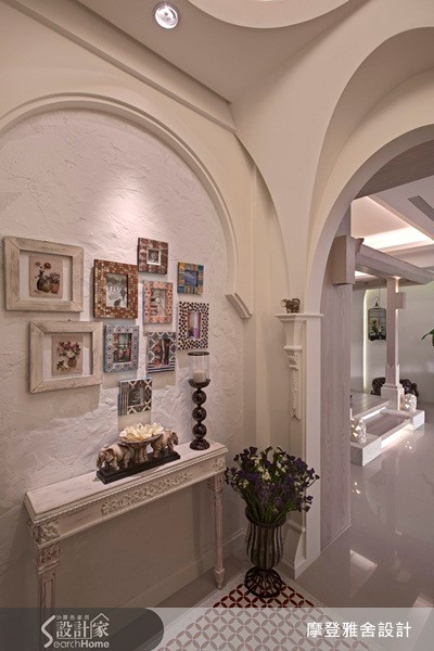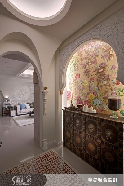 设计师运用独到美感,让家居的每一处空间,都呈现出迥然不同的异国风情,大胆融合中式、印度、南洋、回教与欧洲等不同特色,使每一道视角与风景都值得品味再三,快跟着小编一起来看看吧! 入门处,即可见多层次的拱型设计,搭配花卉图腾、印度风的玄关柜、罗马柱头的装饰等,将不同风情的配件融会贯通,开启惊喜的第一印象;色彩运用上,则让公共空间呈简洁素雅的白色,并移植峇里岛的发呆亭到室内,配上南洋风情的大象石雕、绿意植栽,令人彷彿真的悠閒置身于Villa中;主卧也使用相同的设计概念,在家彷彿身处度假胜地,惬意自在;席地而坐的休憩空间,则将中国云南的「炕」,转化为设计的一部分,充满着复古且地道的风情;次卧,大胆选用传统中式喜庆表徵的赭红与深蓝,佐以南洋风温润的实木家具,让人一进入这个空间,就能感受到古文明的洗礼!小編的最愛设计师将绘本概念植入小孩房中,打造儿童的专属天堂,运用趣味图腾陪伴孩子成长,诉说他们的故事!