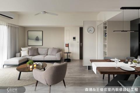 进入玄关即有一道隔屏,有效区隔玄关与餐厨空间。全屋皆铺陈以浅色系原木地板,营造整体空间的明亮与层次感。随着阳光由大面窗户引入,日光、空间与居住者之间即延展出无形对话与悸动。