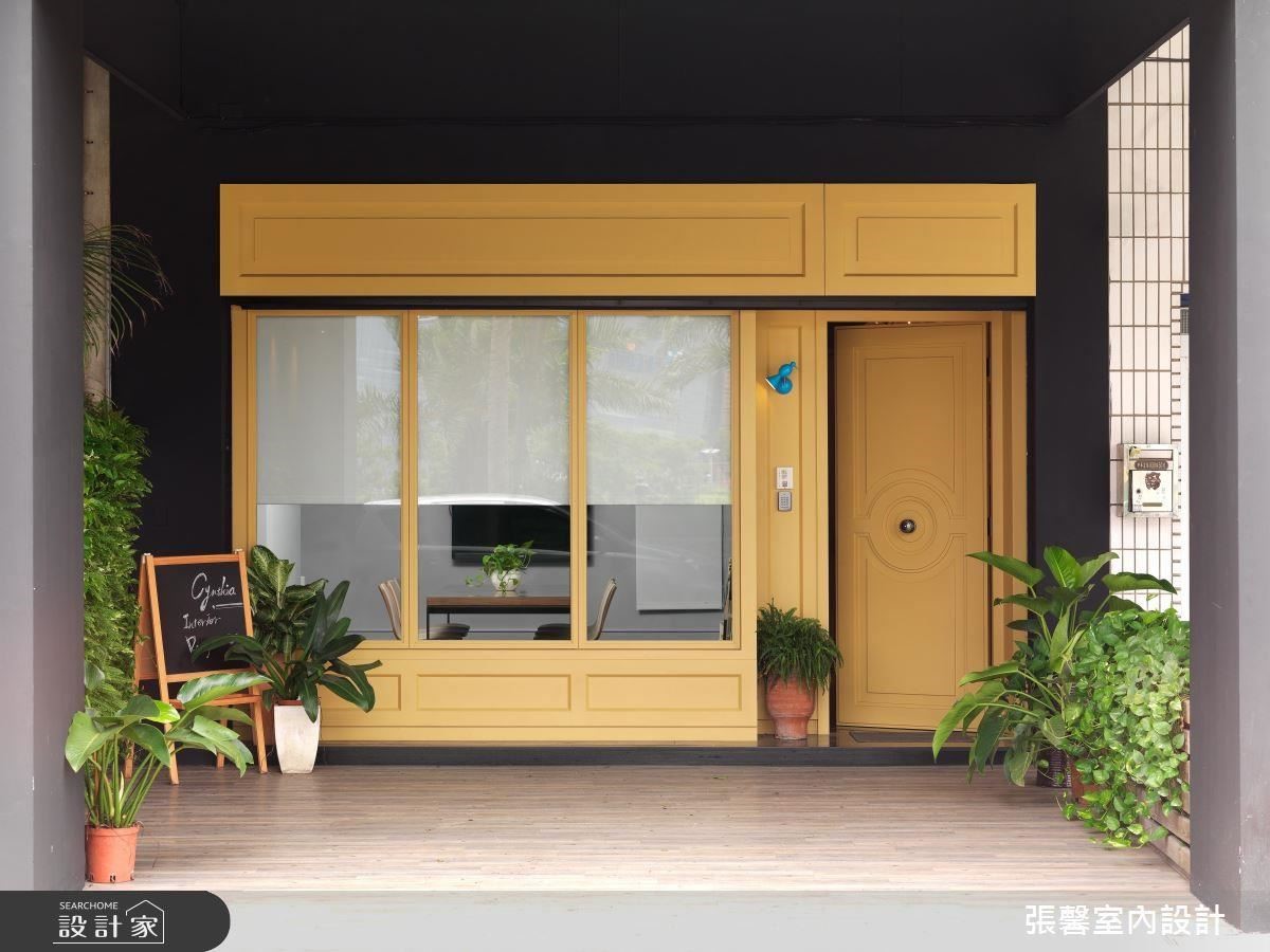 作为办公室的门面,设计师在深黑的底色下,为门框赋予黄色,除了相对显眼,并与温煦的户外阳光相辉映,搭衬绿意盎然的盆景,开启清新的门面印象。