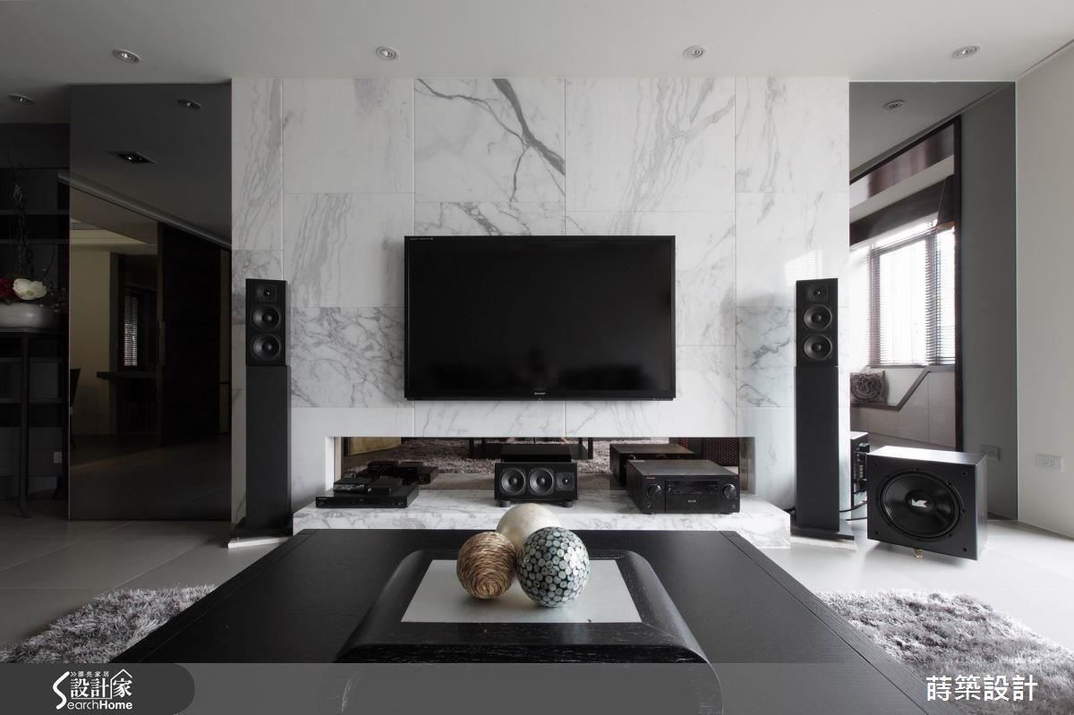 至于电视主墙,运用浅灰大理石打造,营造大器沉稳的气息,并在两侧拼接灰镜材质,形成延伸通透的映照视野,间接提升扩容的效果。