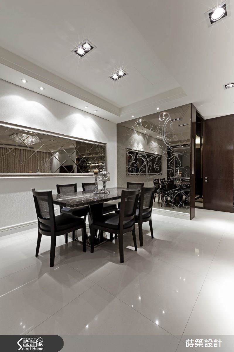 延续这股华丽的设计,餐厅的两面墙以茶镜装饰,特别是典雅的琥珀色泽镜面,分别融入花纹图腾及菱纹镂刻,演译高雅宴饮时光的细腻对白;而且茶镜的反射作用,还有延伸视觉空间的效果,间接达到扩容目的。