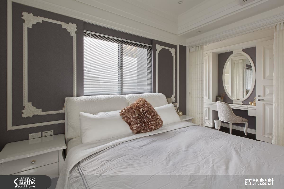 女孩的专属主卧,自然是集梦幻及优雅于一体!选用紫罗兰色拉式窗棂搭配古典桌几,营造出柔美的整体氛围;并善用零碎空间,规划了梳妆台及更衣室,满足日常保养、收纳衣物的需求,让卧室既是休憩空间,也是美丽变身的魔法地。