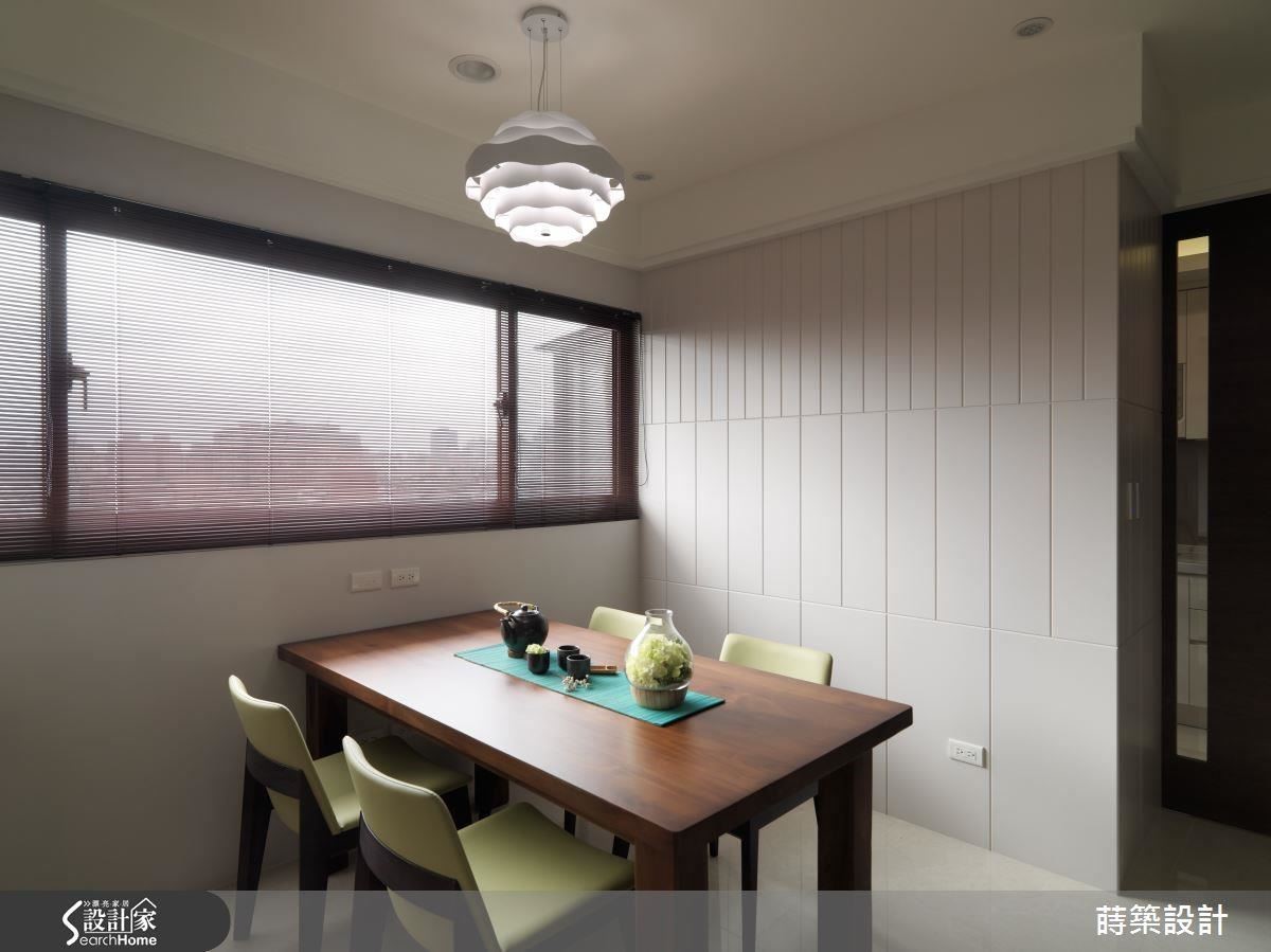 餐厨空间采以开放形式,藉由无阻隔设定,让客、餐、厨场域均享有美好自然光;其次,延续客厅的清爽色调,餐厨也以白色为底,但搭配的餐具柜改用粉嫩色调,带出空间暖度,并彰显年轻、稳重并重的休闲气息。