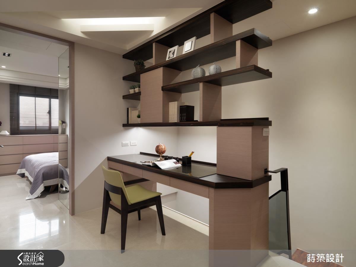 私领域规划在二楼,连接的楼梯以木质铺陈踏阶,塑造温润感,并搭配铁件玻璃扶手,视觉显得通透,也让梯间呈现无压轻盈的感受。至于二楼的楼梯旁留白场域则规划开放书房,巧妙取代围栏,同时结合灯光做出造型天花,造就利落有型的居家面貌。