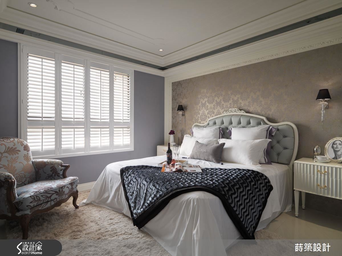 对于卧室氛围的营造,设计师在新古典风格的基调上,另以色彩勾勒环境气息;其中,主卧室以复迭的壁纸搭配沉静墙面色调及精致梳妆台,营造法式特有的古典浪漫,至于女儿的卧房,则漆上温柔的粉色系与收纳格柜维持清爽视觉。