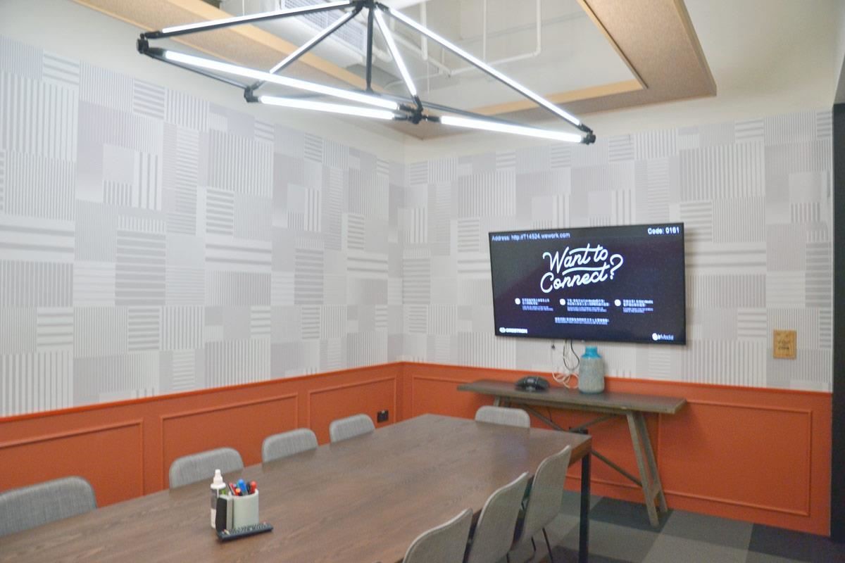 云南路的WeWork恰巧是一整栋12层楼的专属办公楼,外加一层户外多功能的天台。经过进出须刷卡的一楼柜台之后,透过电梯可直达每一层楼,12楼可说是这栋楼的门面担当,明亮的配色与图腾从地板延伸到天花板,让空气中洋溢着一股满满的活力。