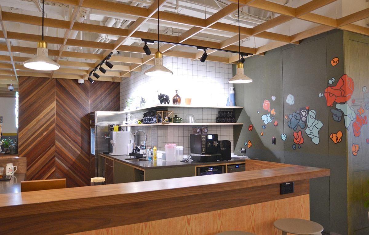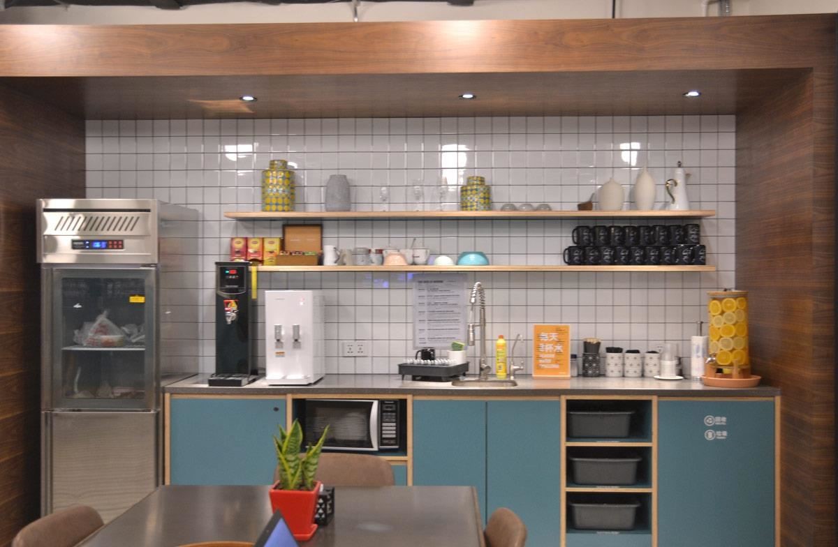 开放式的茶水间,永远有一台咖啡机、还有透心凉的柠檬水,帮助工作者提振精神。