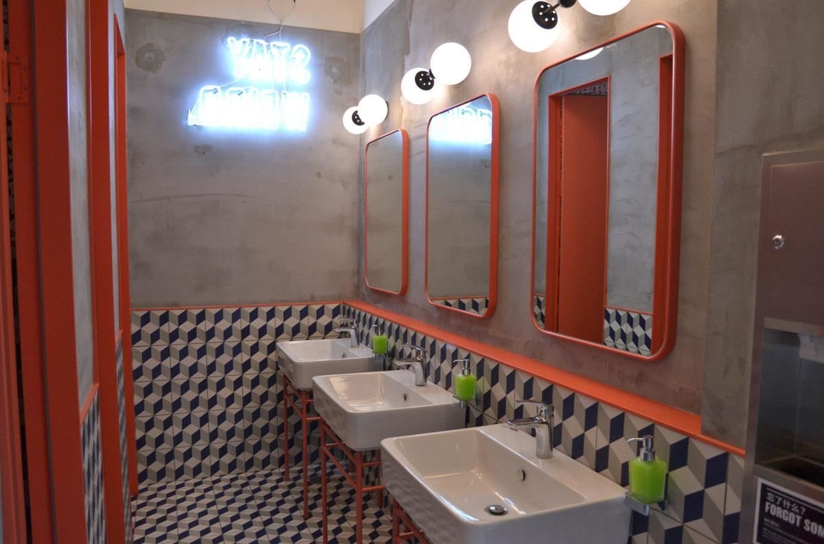 造型灯饰统一的以圆形灯、或不规则的几何灯为主,配合着年轻世代的活泼特质。特别好玩的是地板花砖与壁面几何图腾的穿插出现,似乎希望众多创业者能在快速的花花网络世界中,找到灵感奋力前行。