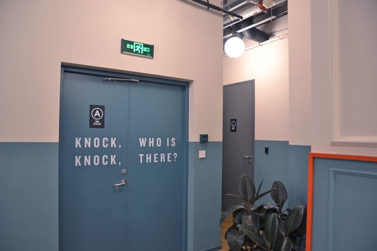 关在自己小宇宙的创造者,就像美国硅谷早期的车库创业文化一样,其实也需要来自其他伙伴的关怀与鼓励,WeWork就特意在不同的转角与门板上,无所不在地留下小清新的互动文字,例如:心比天高,正是一种办公环境潜移默化气氛营造的好帮手。