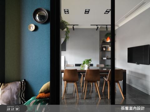 鲜艳的橘色或灰蓝色与白色的互补营造出强烈的视觉感受,从WeWork的走道就可以发现,以上下3:2的颜色对比无形中牵引了视觉的律动。桌椅家具的色彩都选择了大地色系,现代欧系中带点复古的造型,增添办公区域的沉稳特质。