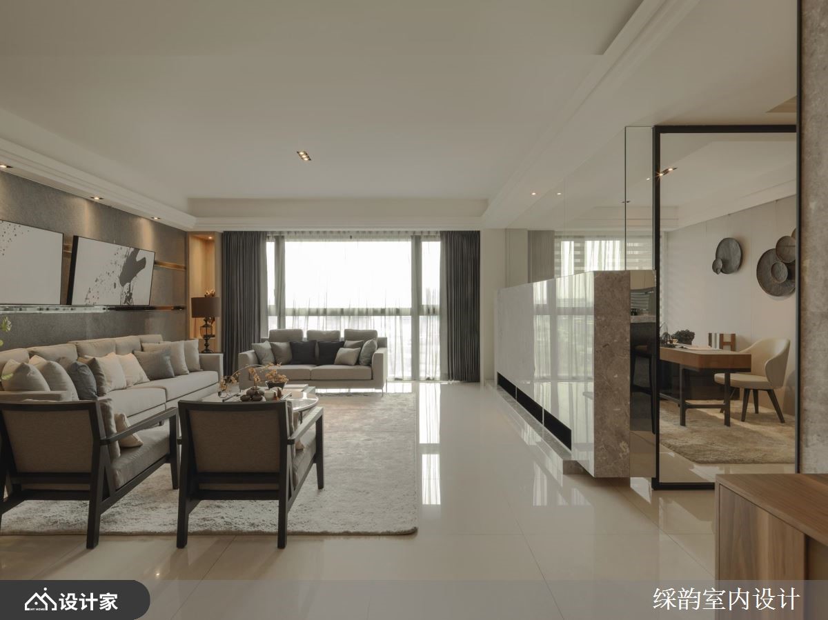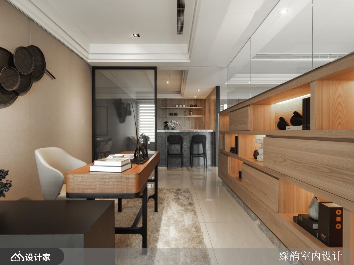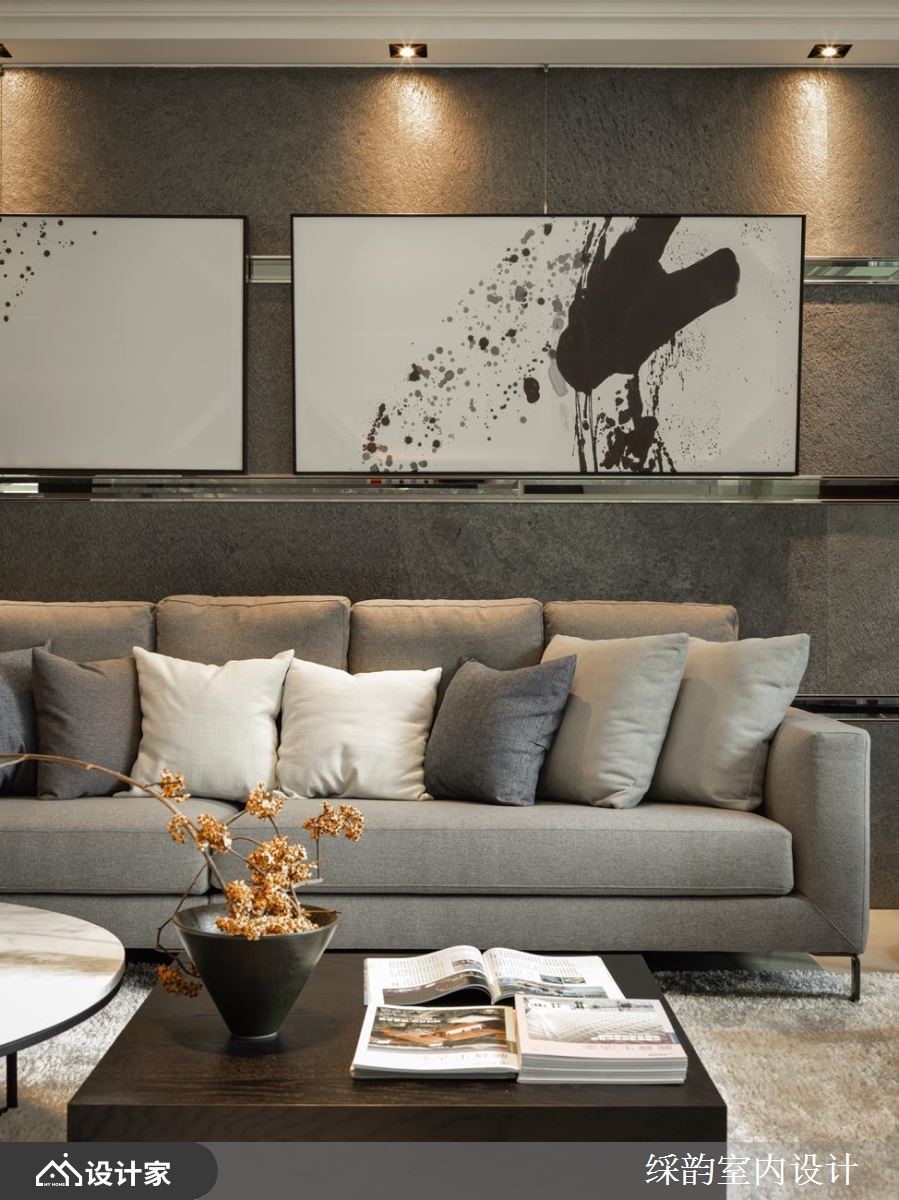 现代风豪宅如何呈现兼容并蓄的风格调性呢?看䌽韵室内设计运用多元材质锻造出大宅空间的家居品味,在低调沉稳之中淬炼精品家居的纯熟内敛意境。为了凝塑大宅的逸趣质感,客厅在灰系沙发与净白地毯的搭配之下,更辅以泼墨点画艺术之作增添人文底蕴,替屋主勾勒出生活品味与高雅情致,而一旁绿意植栽和落地窗汲引自然闲适氛围,让空间点缀出充沛活力。另一方面,材质的多元应用也使得大宅空间有了不同调性的肌理变化,从灰底白纹大理石电视墙面,走至书房,视景切换为温润雅致的暖木韵味,设计师针对不同的机能空间,调配客制化的格局氛围,别有风貌又独具个性。除此之外,抛光石英砖更作为空间美感的连贯性,与书房毗连的中岛吧台及餐厅,则有如高端餐饮空间般的慵懒情调,装置艺术般的玻璃吊灯不只妆点出欧式典雅,更蔓生着时尚都会的雍容怡然。缓缓踏入卧室,可见木地板巧搭木墙、木柜,清新实木质感替私领域打造舒心环境,同时也跟公共领域的低调奢华感作出各异其趣的风格分界,屋主一家人可以待在自己的卧房里彻底放松,感受现代风豪华大宅的闲情气息。小编的最爱客厅的泼墨画作替整体空间画龙点睛,点出东方风韵的同时,也凿刻出艺术人文的品味质感。