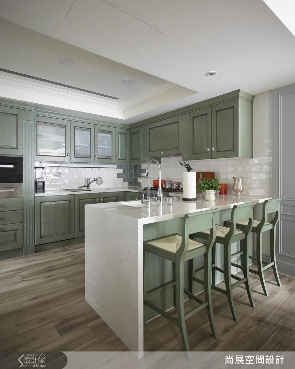 厨房,不再仅限于烹饪煮饭,对于讲究生活质量的主妇而言,每一寸使用细节都不容马虎;像是这个乡村风厨房,除了以柔和草原绿带出年轻气息外,更做足每个收纳,区分餐桌与吧台,将酒柜结合壁炉、整合各项厨房设备使用机能,让区域段落分明并保有密切互动,变为适合聚餐的美式情境,即便净水器、地暖设备等细节也相当重视,体现舒适人性化的生活旨意。