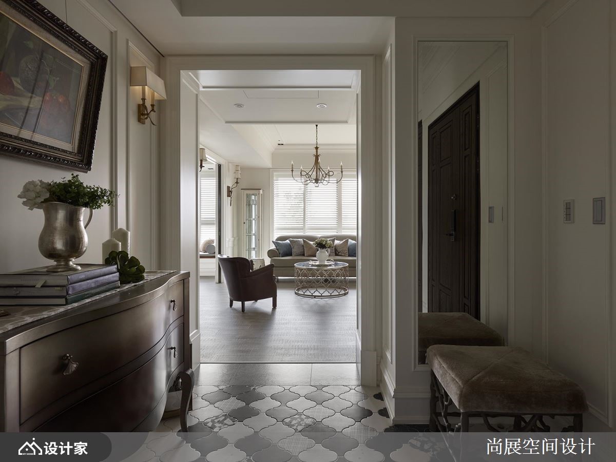 旅居过各地的医师夫妇崇尚欧洲慢活态度也嚮往美式居家的优雅简约设计,因此最终以现代美式风定调这间 40 坪住宅。在开放式的公共空间中,以烘焙厨具齐全的中岛厨房为家的中心,空气中不时飘散的甜气息,为平常忙碌的都市生活调慢步调,增添更多人生趣味及家的温度! 玄关地坪以黑白色系的花纹贴砖分野场域,入门处端景牆以復古的柜体搭配挂画及黄光壁灯,揭开了美式风情的序幕;客厅以壁炉为中心,佐布沙发及金边家件呈现出悠閒温馨又不失现代感的氛围,充分发挥招待客人的交谊功能;书房两侧设计的隐藏推门延伸了客、餐厨区块,两边皆可出入的设计,让光线及动线同时畅流于室内;餐厨区设备齐全,中岛式厨房方便製作,高科技烘培厨具节省了时间,让鑽研多年甜点的太太能一展烘焙实力,能在动线良好的开阔空间完成;走入私领域,以 baby 蓝搭配纯白色系带出卧房的浪漫轻透气息,另还设有一更衣室,增加衣物收纳同时留有一处太太的化妆空间。 小编的最爱 针对屋主的需求,设计师在酒柜设计多下了些心思,除了餐桌旁一体成形的开放式铁件展示柜上方可收纳酒瓶外,位于冰箱区旁还有一内崁式酒柜冰箱,让不同品种的佳酿都能拥有最适合的保存空间!