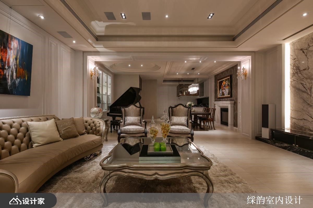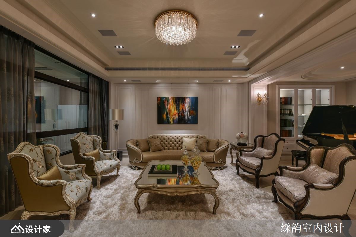对于新古典风格有如何的想法呢?其实现代的法式古典大宅除了兼具生活机能,在质感品味的呈现上有着诸多细腻之处,不因空间坪数大而少了细节。为了避免法式风格的线条过于繁复拘谨,设计师运用现代手法化繁为简,将古典元素去芜存菁,既有都会时尚品味,也兼具法国贵族雍容豪宅的华美意境。像是保留天地壁的清爽调性,再加上客厅墙面的线板、艺术挂画和法式家具的搭配组合,优雅结合了现代风和法式古典风,揉杂出开阔细致的音符曲调,谱着欧洲贵族舞会般的柔馨旋律,又若文人雅士的沙龙空间;轻啜一杯热饮,惬意舒缓的居家生活就此开展。进入餐厅,中岛吧台发散着有如星级饭店的大厅Lounge bar气息,壁炉设计则巧搭人文画作与独具设计性格的水晶吊灯,餐厅的整体氛围是实践优雅生活的沉稳脚步,一步一步踏向豪宅殿堂的高端质感。小编的最爱客厅的法式沙发单椅充满浓厚的欧洲情韵!相对于公共空间的欧洲艺文风格,卧室规划则有温暖和缓的唯美气氛。