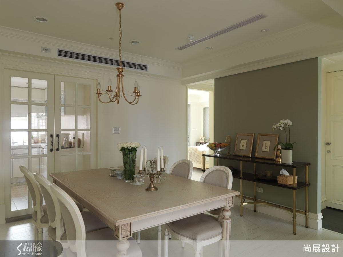 餐厅区则以优雅柔软的湖绿色作为主题色调,为空间带来清爽气息,同时隔断不做满,两侧留出通道,让出入动线更方便。而厨房与餐厅以纯白方格拉门作为区隔,更展现纯正法式质感。