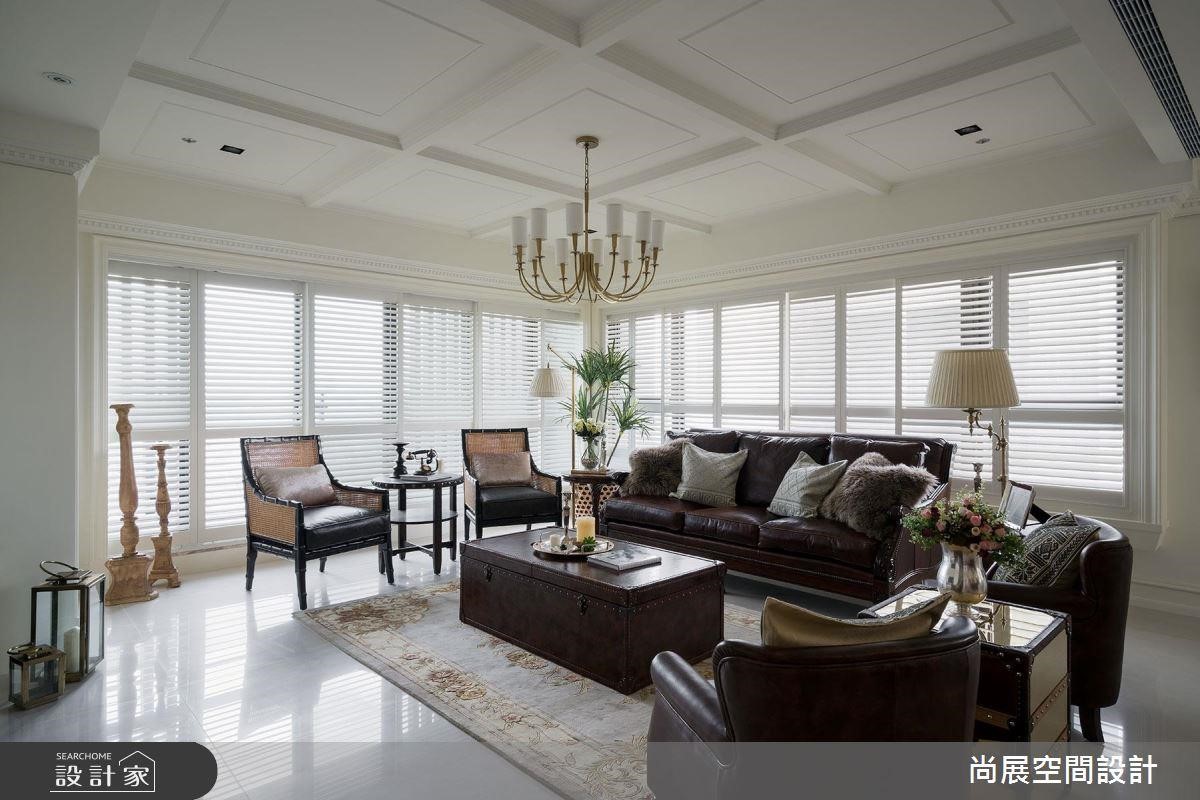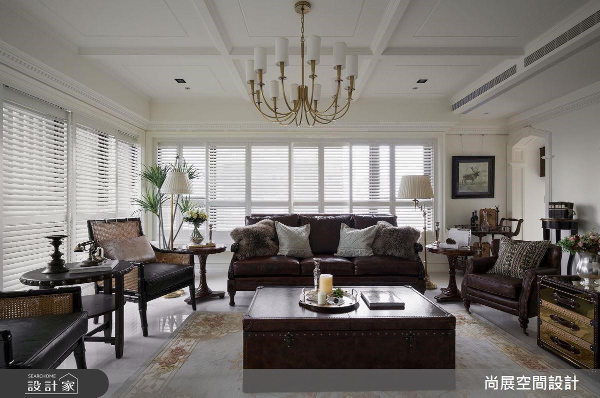 在象征主人品味的客厅,特地雕塑出菱格天花,更显时尚贵气。家具则以传统美式的铆钉沙发为主轴,运用具有东亚热带风情的藤编单椅,以及远航使用的皮箱茶几。带有殖民风格的家具配件,增添异国情调。