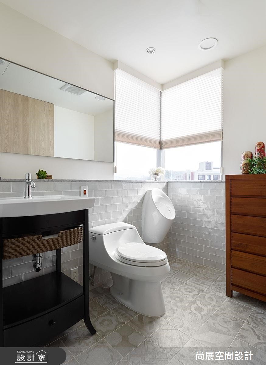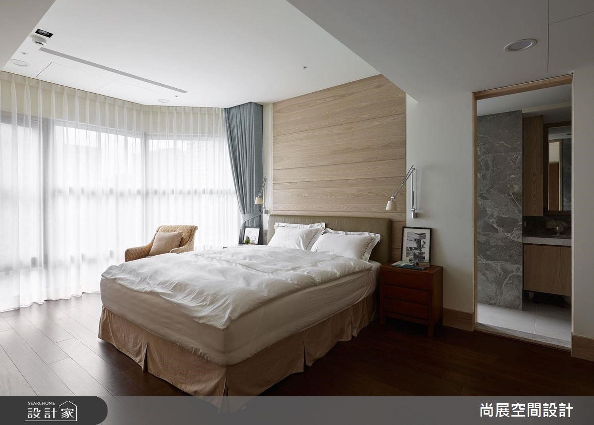 仅有两人居住,居室数量不用太多,因此拆除原有的主卧隔断,向外调整扩容空间,展现舒适的生活氛围。同时卫浴不设门片,并调整内部配置。将洗手台移至门口,有效遮蔽入门视线,维持私密的洗浴空间。