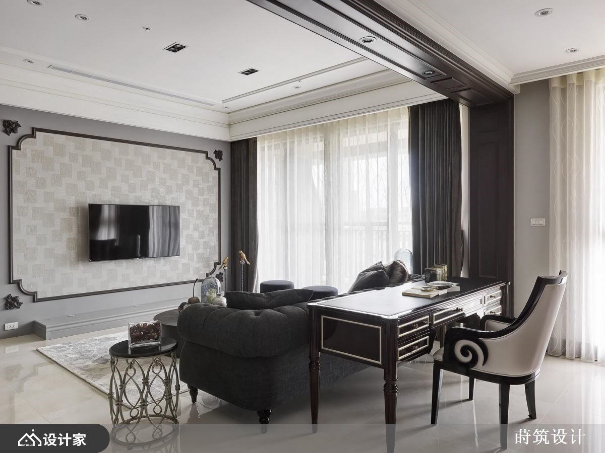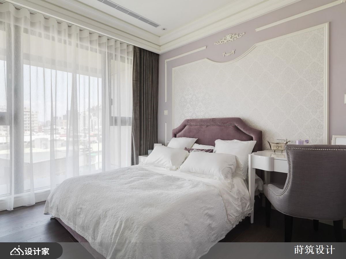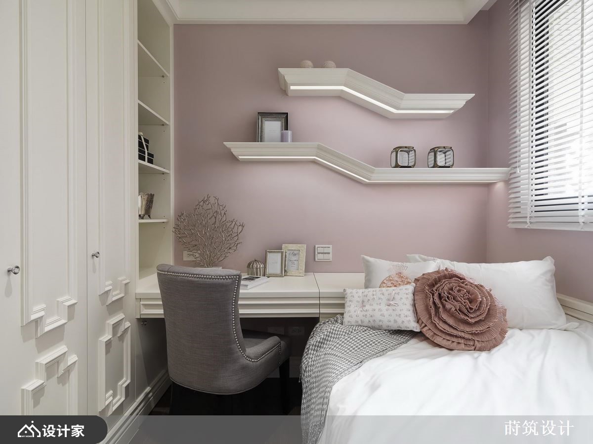 一家四口入住 132 平米美式风居所,由于所有人育有两个女儿,因此室内特别采用粉紫色系妆点,呈现淡柔的浪漫情怀,而充足的自然光也打开了居家尺度。【大框小框,营造优雅立体感】餐厅、客厅和书房形成复合式格局,让生活更有弹性。餐桌及书桌同样是黑白配色,维持方型空间的风格一致性。电视墙和展示书柜衬底虽然墙纸的花纹不同,但依旧协调出优雅的对称性。站在电视墙前,往书房方向望去,宛如一个大框包围书柜的小框,营造空间的立体度。私领域的三间卧室,即便都是用柔美色系凸显女性气质,却又拥有不一样的空间表情:粉红墙面的卧室以流动线条的展示架,搭配洁白的收纳柜及梳妆台,赋予空间公主风范。另一间卧房,则采用紫色布质床头版,加上墙上的雕饰,打造典雅气氛。而两面开窗的卧室,拥有一间私密的更衣室,成就爱美的女王。小编的最爱透过公共空间的开放式规划,让居家看起来更加辽阔,而且动线也相当清楚流畅,整体空间彷佛是优雅的华尔兹。