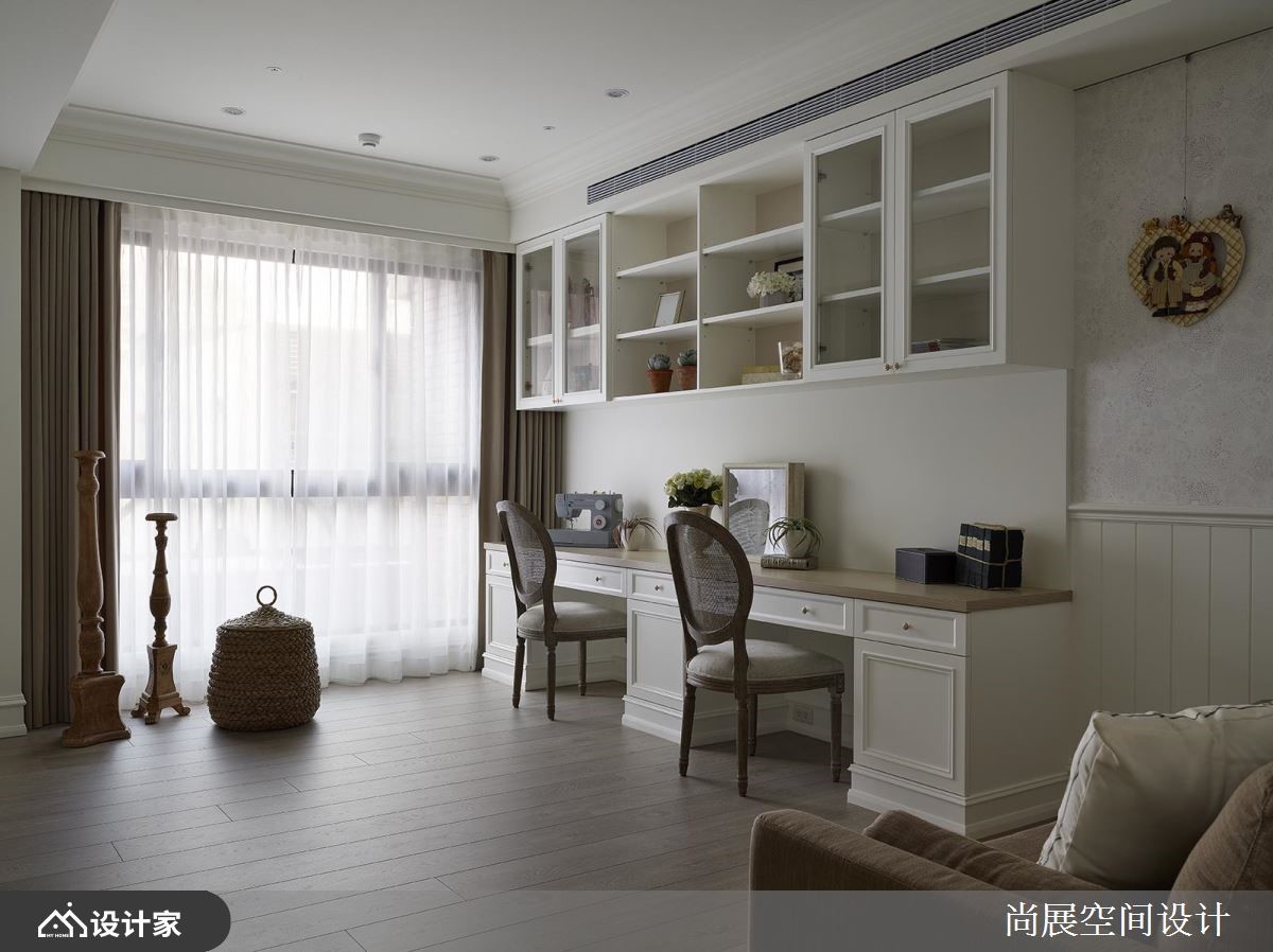 422 平方米美式风大宅,格局方正、空间宽敞且採光极佳,设计师加以善用并结合自身久居国外的体验及观察,打造出最经典的美式风格,让移民加拿大多年的屋主夫妇同样能拥有充满生活温度、如置身国外的居家空间。 【开放手法,拉宽界线】玄关处以花纹砖分野出室内与落尘区,并以收纳柜搭配挂画作为入门处的端景牆;超宽敞的客厅以整面百叶拉门营造出美式气息,大器兼具自在的氛围,作为迎宾客厅或家人情感交流空间两相宜;客厅后方以一面俐落大方的展示层柜,界定出开放式书房场域;平行于客厅的用餐区,以铁件透明拉门设计,为开放式公领域阻挡油烟;走入私领域,以纯白色系调和出减压感,并适度挹注木作,增添卧房温度,沙发特意以小碎花风营造美式情调。 小编的最爱 真正道地的欧美住家,是充满真实感的放鬆氛围,设计师巧用家具、艺术品及生活用品的摆设来营造风格。在家具选用上,以金属风格的装饰,带出一些復古味,并搭佐异材质软件及线版设计,散发出经典美式味道,为生活空间赋予更多专属特色。