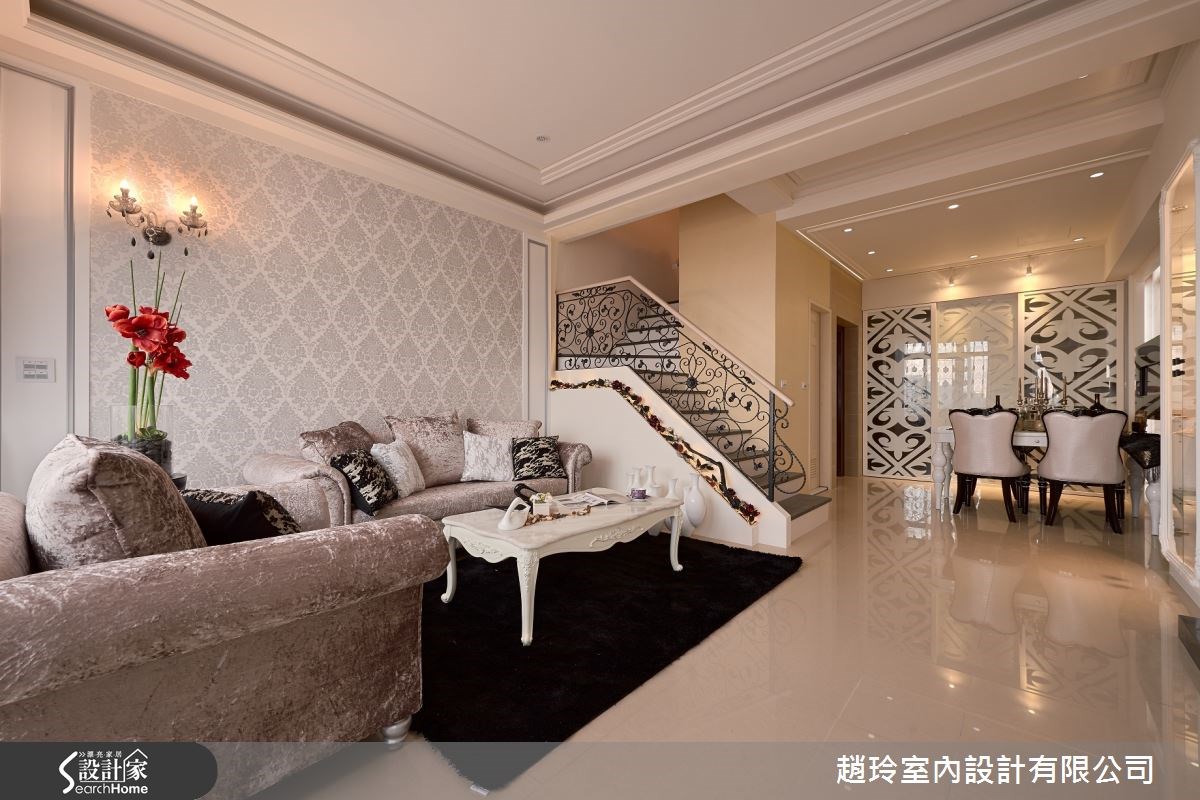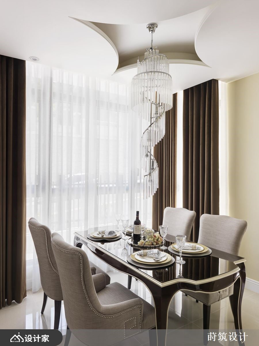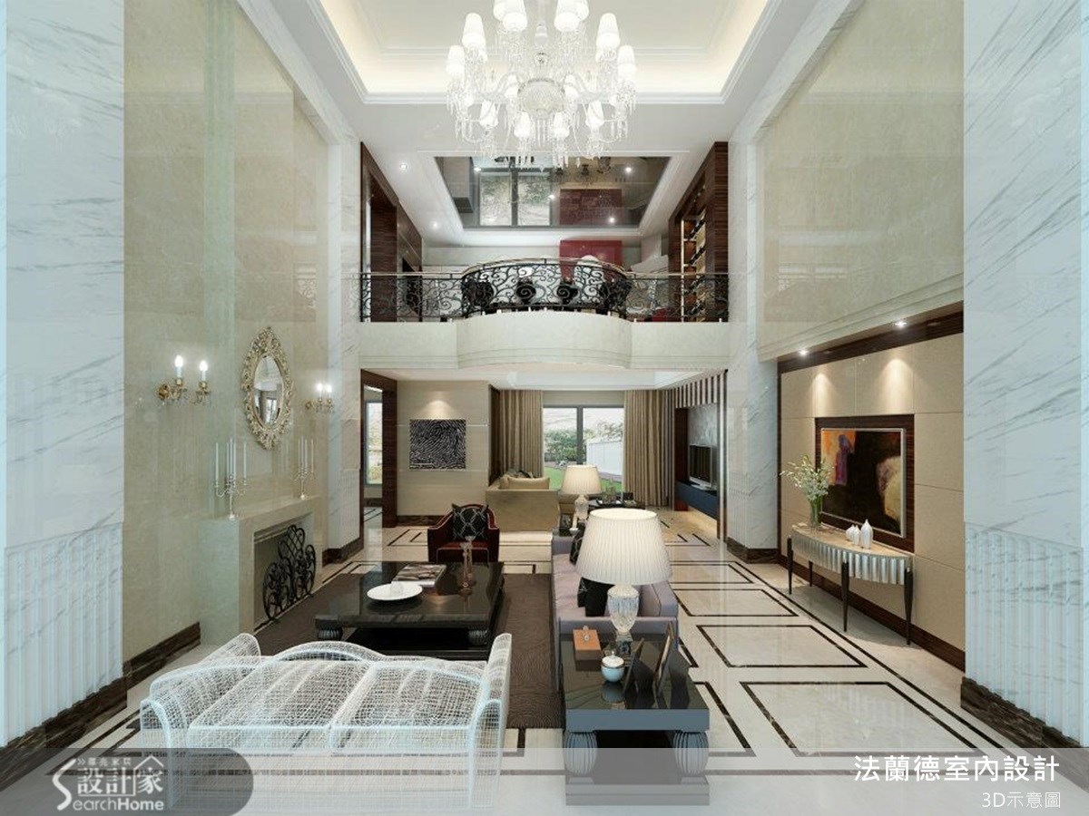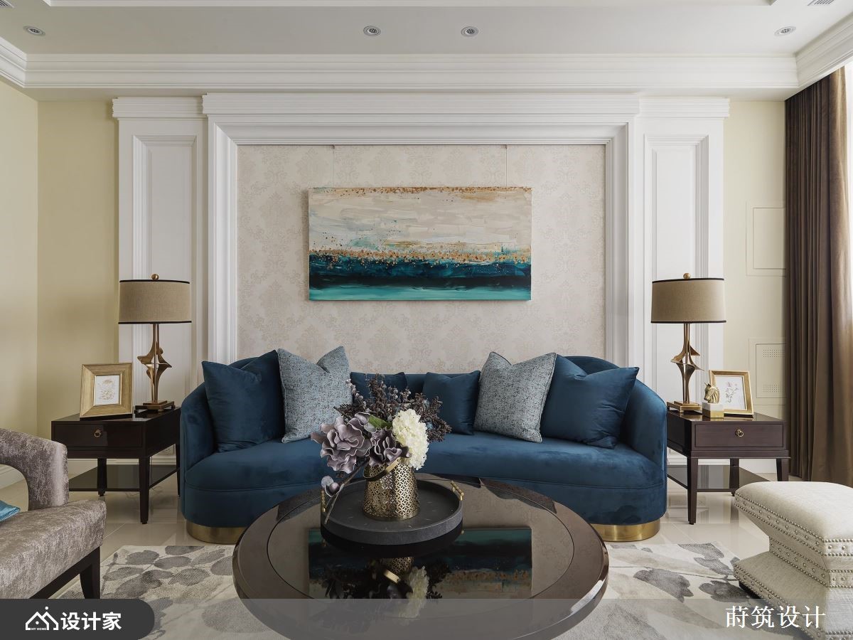 251 平米的新古典独栋楼,透过甜品般的色彩搭配,在充足自然光的照射下,让三代同堂的奶油色住宅,包裹色彩丰富的蜜糖风味,打造高雅柔美的居家场域。【优雅颜色,营造甜品系的别墅气氛】客厅采用柠檬塔的酸甜口味妆点墙面,水蓝色的沙发跳脱出室内的鲜明活力,而电视墙选择了深色大理岩材质,与雪白线板形成对比。和厨房以一道玻璃推拉门分隔的餐厅,在造型天花板悬挂宛若水晶旋转梯的灯具,提升居家的格调。另外,纯白展示柜同时担任门厅隔屏的角色,界定了室内格局。离开一楼的公共空间,二楼贴心地安排次卧室与孝亲房,让长辈上下楼可以更为方便。彷佛芋泥蛋糕卷的次卧,在窗边设置书桌,营造明亮的阅读场域。孝亲房则带来提拉米苏的微苦,替操心一辈子的母亲规划舒适的休憩空间。主卧位于三楼阳台旁,可丽露的口感中藏着草莓色的更衣间及化妆台。小编的最爱更衣间在水晶吊灯的映衬下,显现填满少女情怀的轻柔色彩,而开放式的柜体设计,展示家人的服装品味。