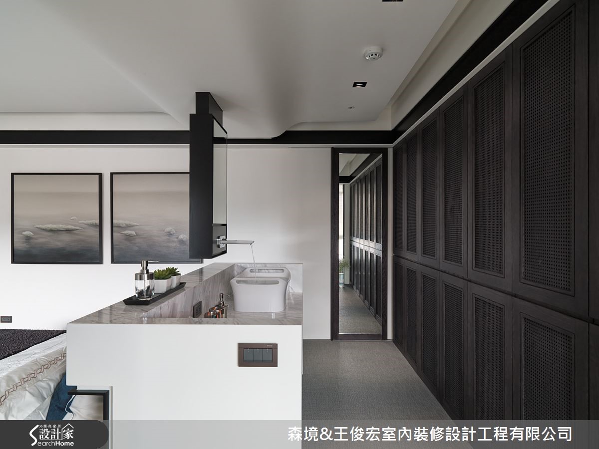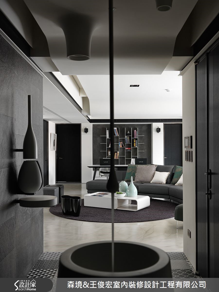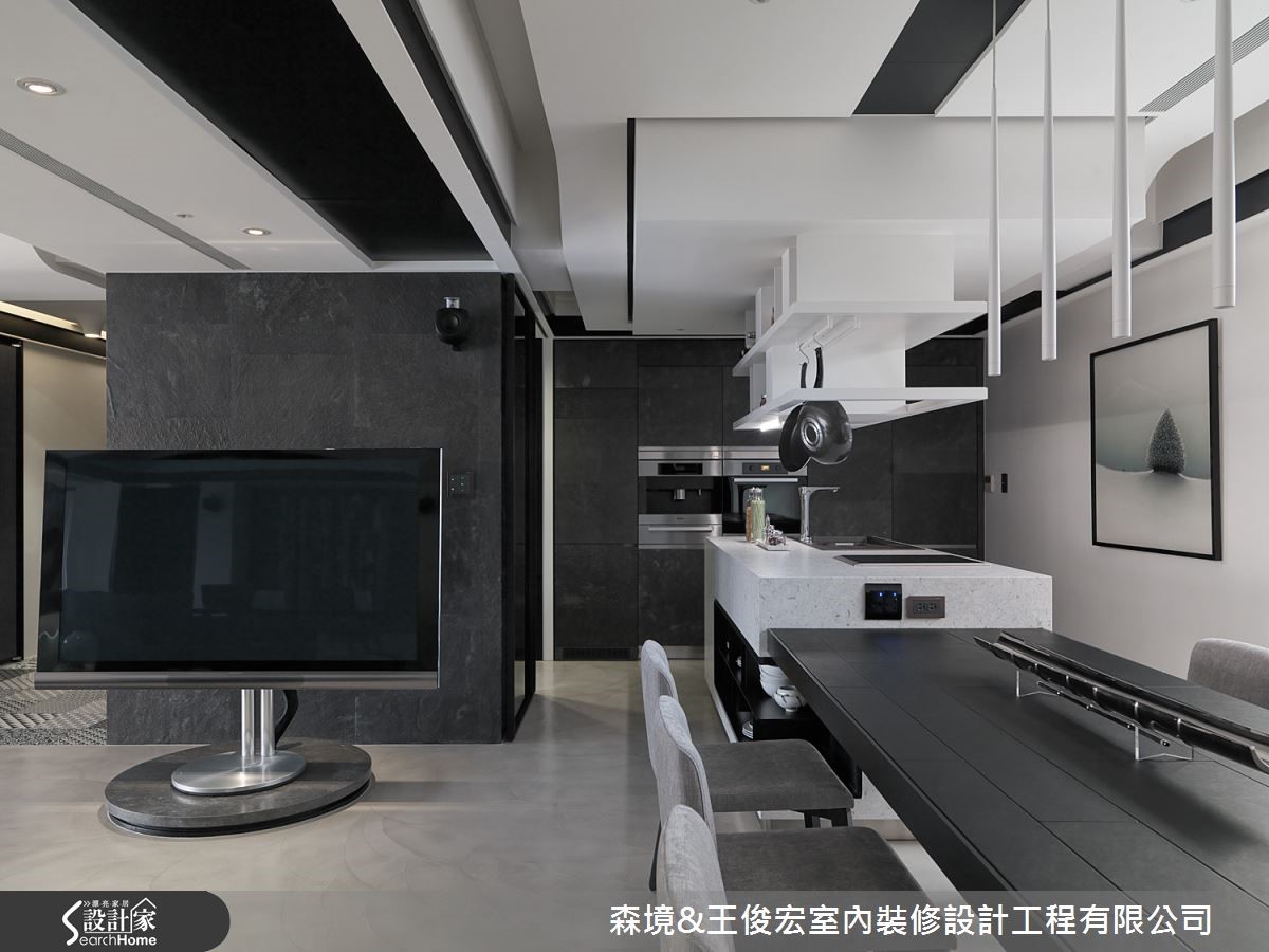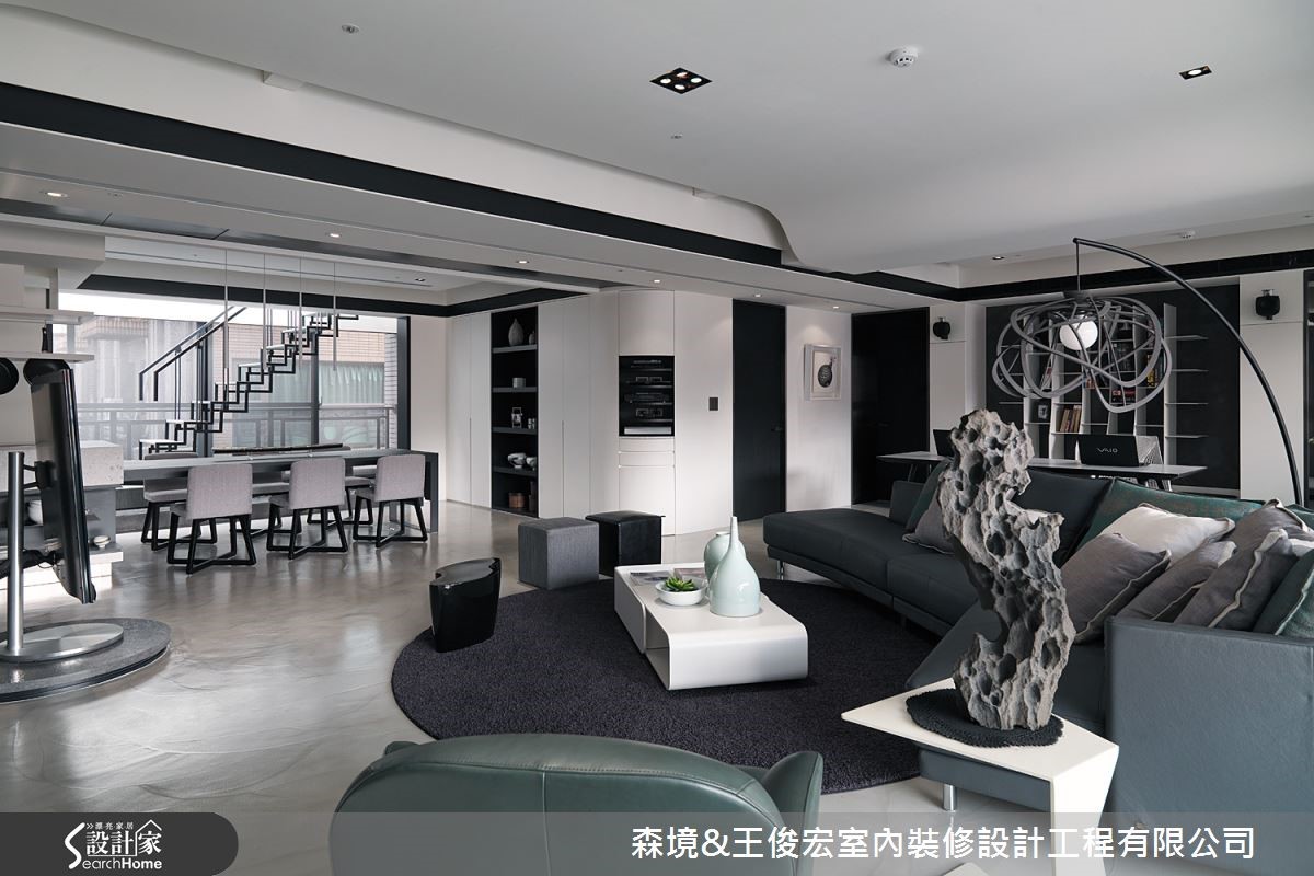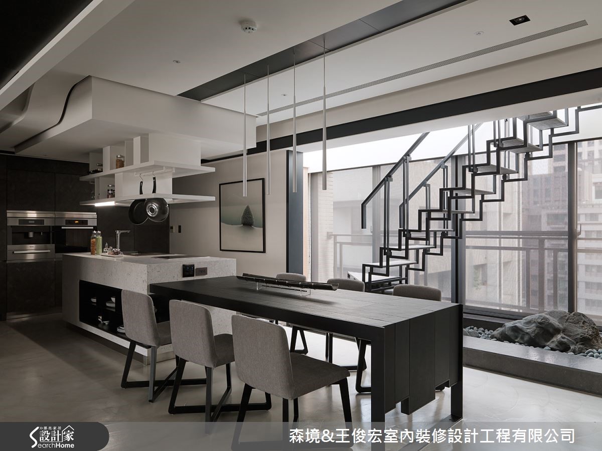 长年生活在国外的屋主,希望也打造一处专属自己的风格家屋;与王俊宏设计师经过不断讨论,灵感交流后,最终呈现出时尚现代风,并强化厨房内所有设计细节,打造内外兼备的绅士私宅。【时尚现代风设计】大面采光的优势,为了解决单面楼梯量体挡住光线的问题,将楼梯的RC材质变成轻量化铁件,创造出轻盈无压的视觉造型,同时让光可以大量走入室内;玄关天花板以波浪状设计延伸入室,修饰与美化空间大梁结构,呈现出大器姿态。考虑空间里没有独立的墙面,因此弱化电视墙体,仅摆放在空间的角落,随之以45度角的沙发配置,且延伸后方的书房与飘窗,串连动线安排;开放书房特别创造弧线形展示造型书架,隔板框构出各种尺寸的面积,可容纳各种尺寸书籍。小编的最爱屋主非常讲究厨房设计细节,以大面拓彩岩铺陈主墙面,视觉产生流畅、宽敞大器之感;进口设备结合专属设计的柜体,再搭配利落时尚感的不锈钢电器,量身订制专属绅士的厨房领域。