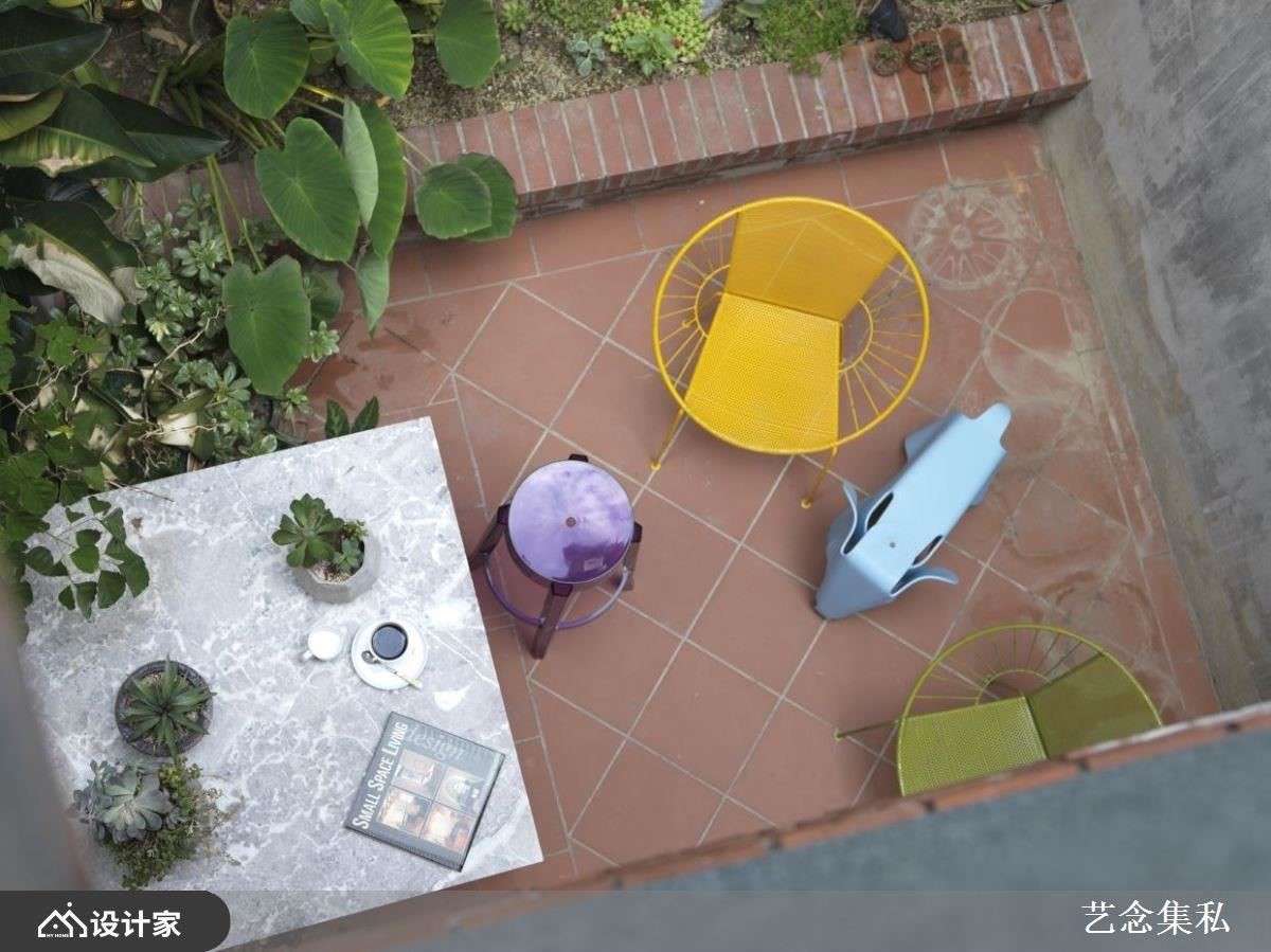 大稻埕的传统街屋多为二进一过水(二厅一院)的建筑形式,其中 "过水" 有时为廊道、有时为天井庭院,艺念集私将之改造为绿意庭园区,让来访的宾客、业主皆能在久谈公务后,来此彻底放松、感受悠闲恬然的绿意环绕,周边的植栽包含鹿角蕨、琴叶榕、千年芋、百万心等,有如微型森林般酿造出静谧舒适的自然气息。 设计师在 "创新" 与 "保留" 之间找出绝佳平衡点,承接了老旧建筑的古韵风情,也能在静谧老房中深刻探询文艺品味,向世人展现历史空间改造后的诗意、优雅,以及岁月的美好。