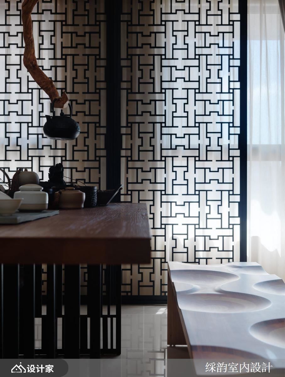 此处援引充沛日光,轻盈光感穿透镂空设计的铁件花窗,突显东方图腾的隽永之美,设计师结合现代风格,在此让中式古典有了崭新的诠释定义。