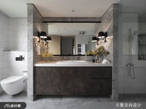 与其规划零碎的柜体,不妨将梳妆镜结合收纳机能,做出一物两用的镜柜设计,用来摆满那数不清的瓶瓶罐罐,不只让视觉更为清爽利落,也免去安装柜体或买镜子的费用,装修预算自然而然省下了。