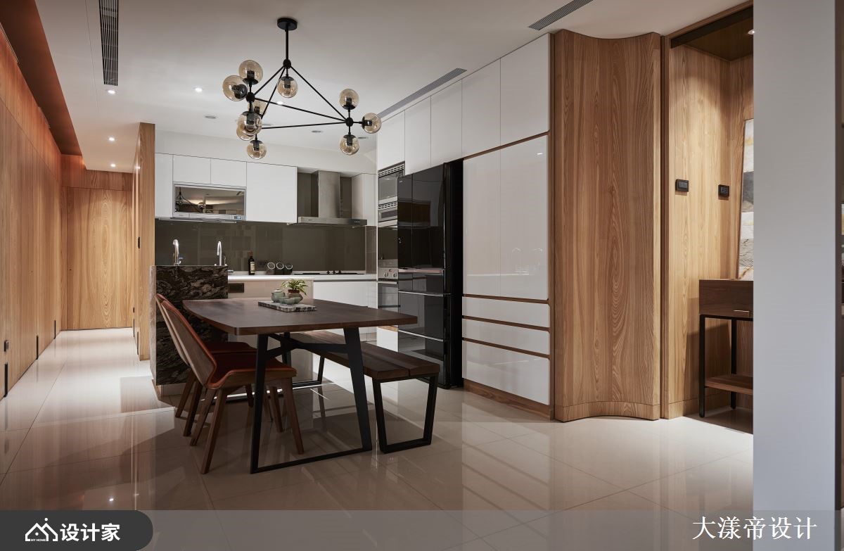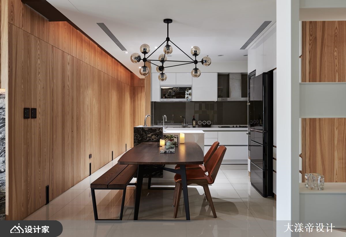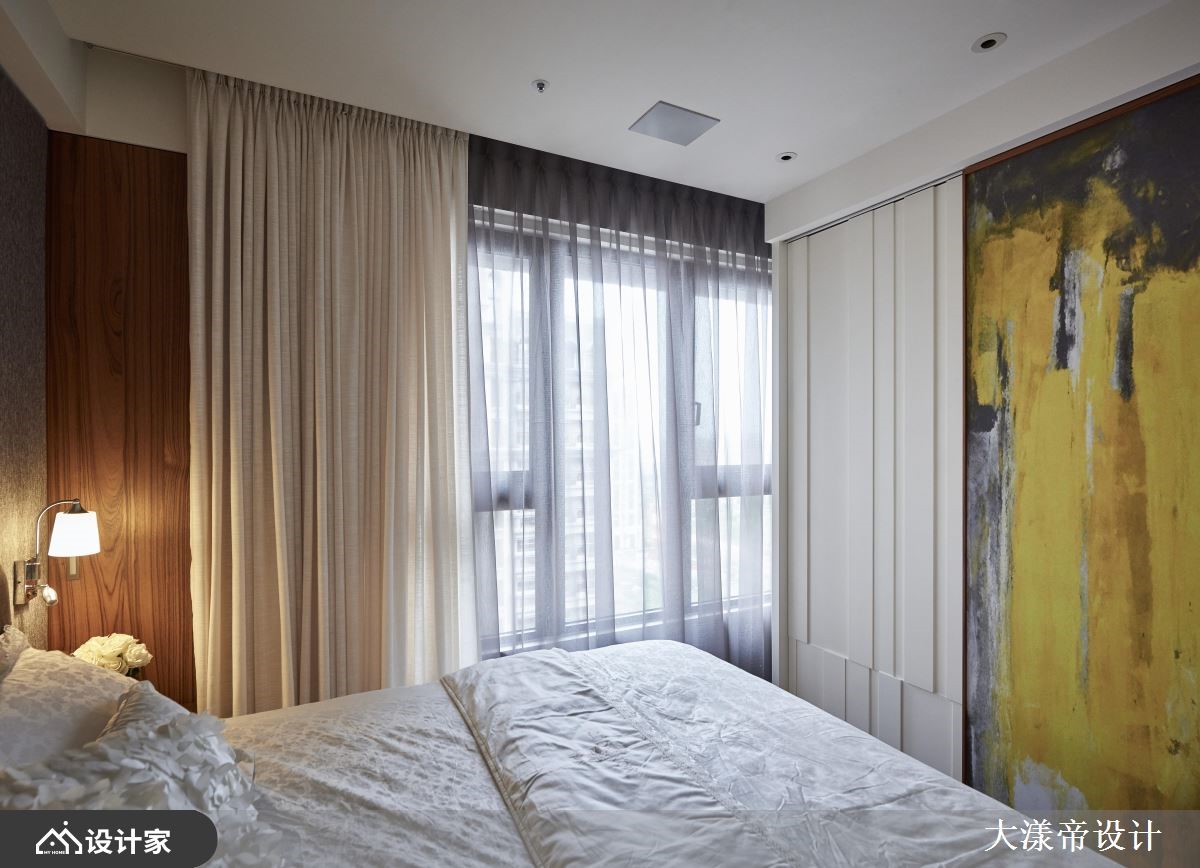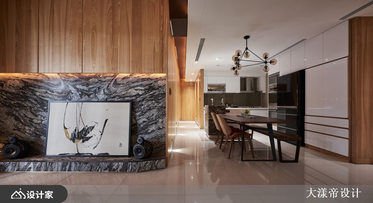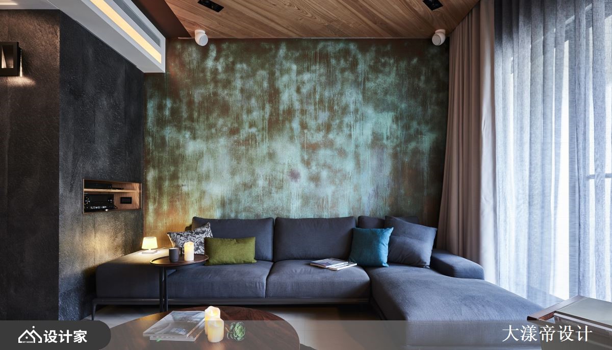 设计师以放松、休闲作为空间定调,运用多元的灯光、材质等营造空间亮点,并加入大胆的用色,让居家有如一幅泼墨水彩画,绘出屋主的梦想居住蓝图,快跟着小编一起来看看吧!厅区,规划拉高的天花板,并铺贴斜纹木皮,让空间衍生拉伸放大的效果,搭配温润的木家具,构筑充满暖意的视野,但同时大胆加入创意亮点,像是于主要电视墙做出独特造型,或在沙发墙渲染鲜明的色彩,带出引人入胜的焦点画面;空间内墙体兼具储物与展示作用,完善界定不同的使用区域,并打造白色篓空格子屏风,展现独创的视觉表现;循着廊道步入卧室,则可见布艺绷出的床头沉稳表情,但与之呼应的墙面却创新地给予泼墨处理、形成鲜明对比,创造风格独具的寝居韵致!小编的最爱 现代人的生活压力大,设计师于空间内挹注心灵的平静,简化装饰与喧哗奢侈的铺陈,让不同材质交互运用,激荡出令人放松的居住情境!