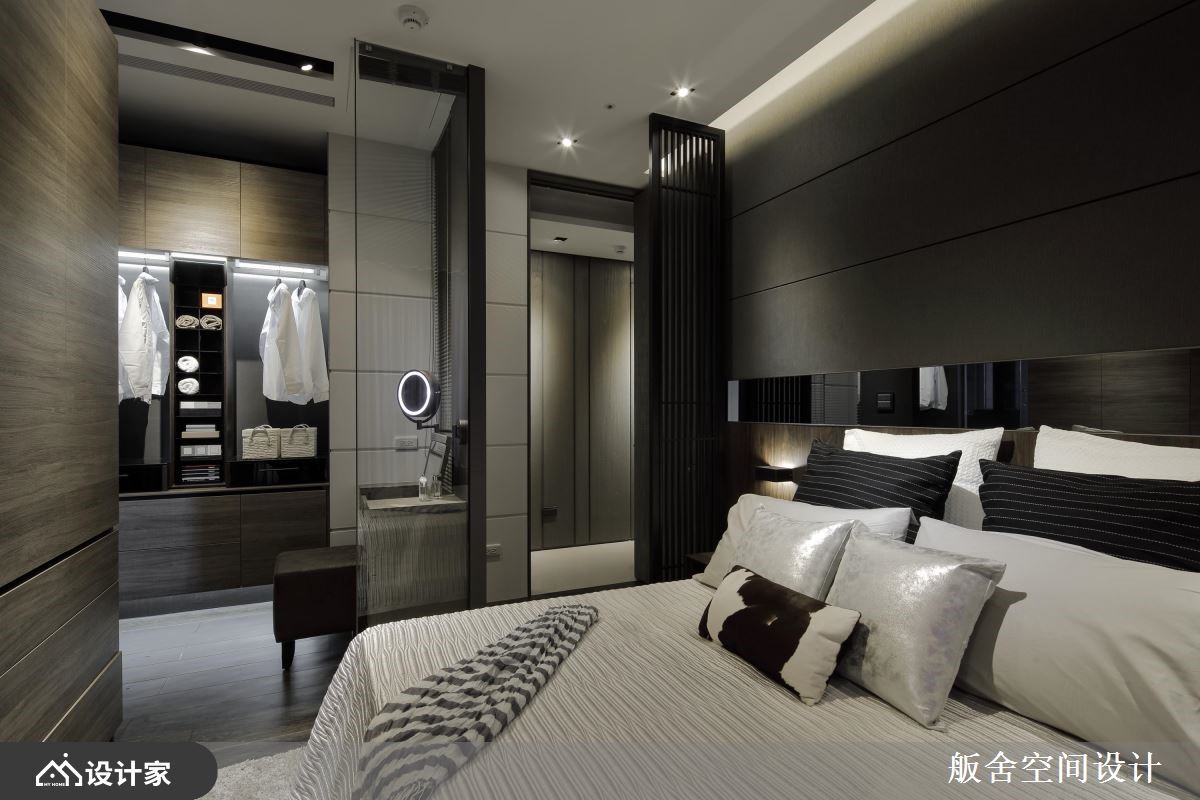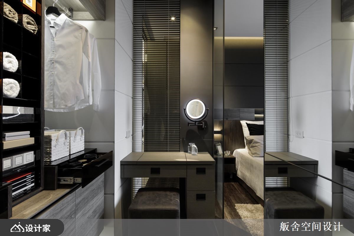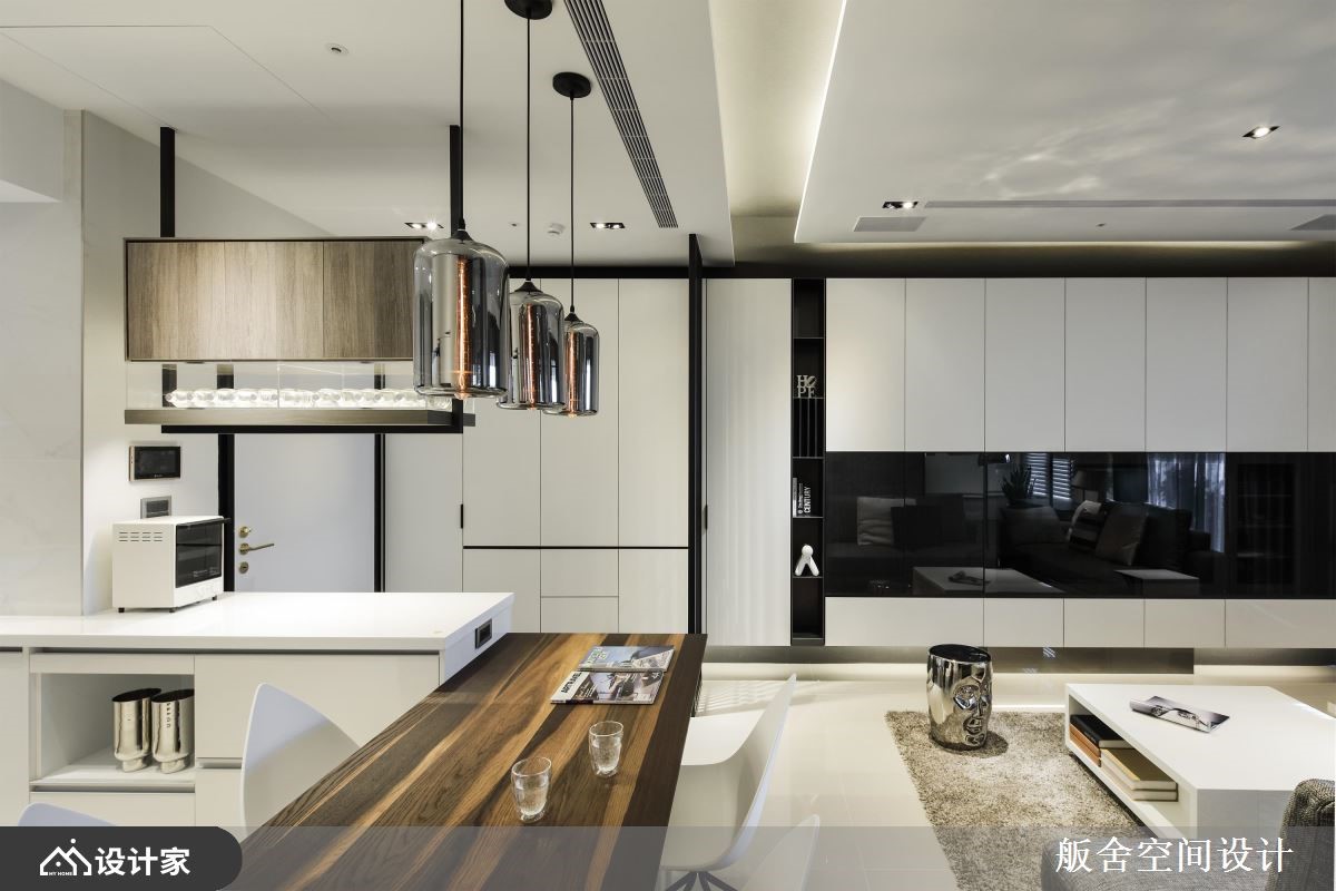 92 坪米现代风宅邸,屋主希望为一家四口打造独立空间,除了主卧外还希望增设两间小孩房以及老婆的更衣室,因此设计师重新调配各空间比例,并以半开放式设计手法让有限的室内空间,创造更宽阔的视野及实用机能。 玄关处,纯白收纳柜体搭佐黑色框线,揭开入室现代风视觉序幕,格栅屏风则阻挡一眼穿底的问题;客厅延续着玄关处的黑白设计,视觉得以延续,白色空间则具宽敞效果;转向沙发背牆后方处利用铁框玻璃隔断的半开放设计创造出一间男孩房,同时放大公领域,且地坪架高的设计,创造海量收纳空间,男孩使用书桌时,双脚也能自然垂放桌板下方;餐厨区半岛吧檯紧邻长形木质餐桌,延伸用餐范围,并利用存在感强烈的金属灯具带出个性表情。 小编的最爱 疼老婆的男屋主,希望在主卧加入更衣室、化妆区的设计,因此设计师同样以半开放设计,分野出卧房中不同场域,并运用精緻的彩妆收纳分类、量身订做的化妆桌,为老婆献上时尚又实用的设计。