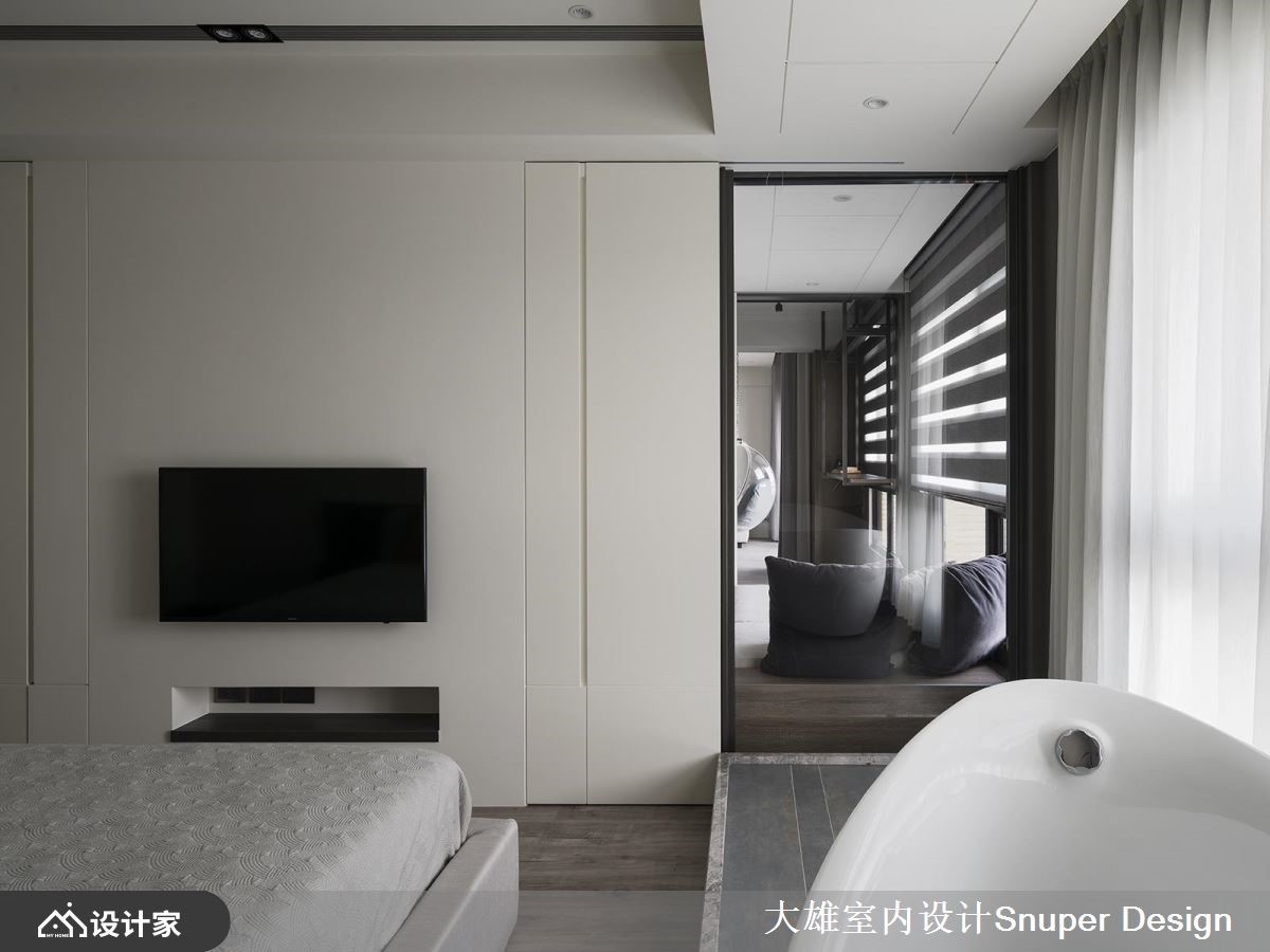 客变后格局还是有问题怎么解?电视半墙创造多元机能,主客卧对调优化动线,59.4 平米新成屋化身质感文青宅