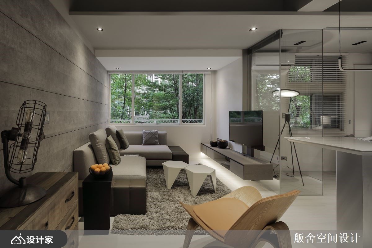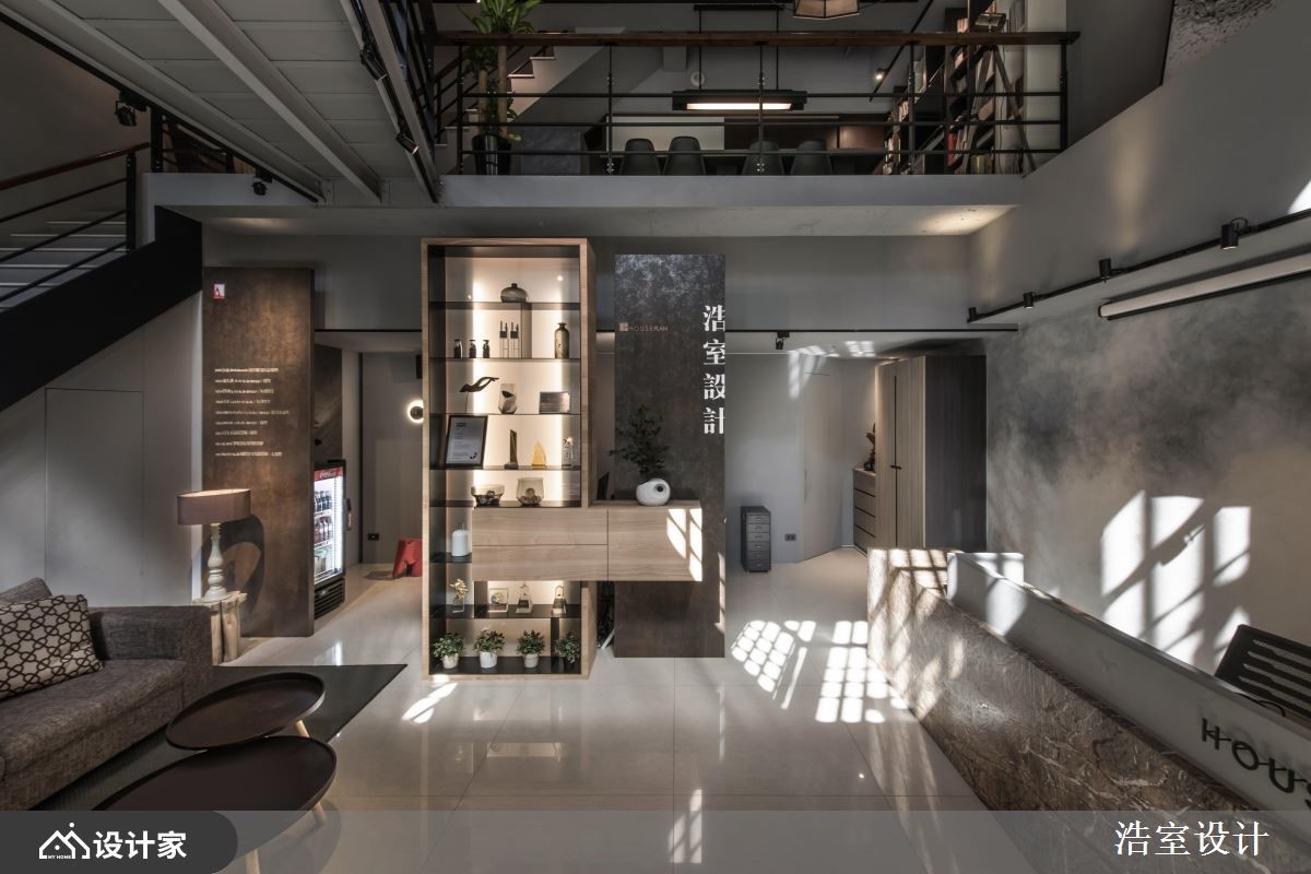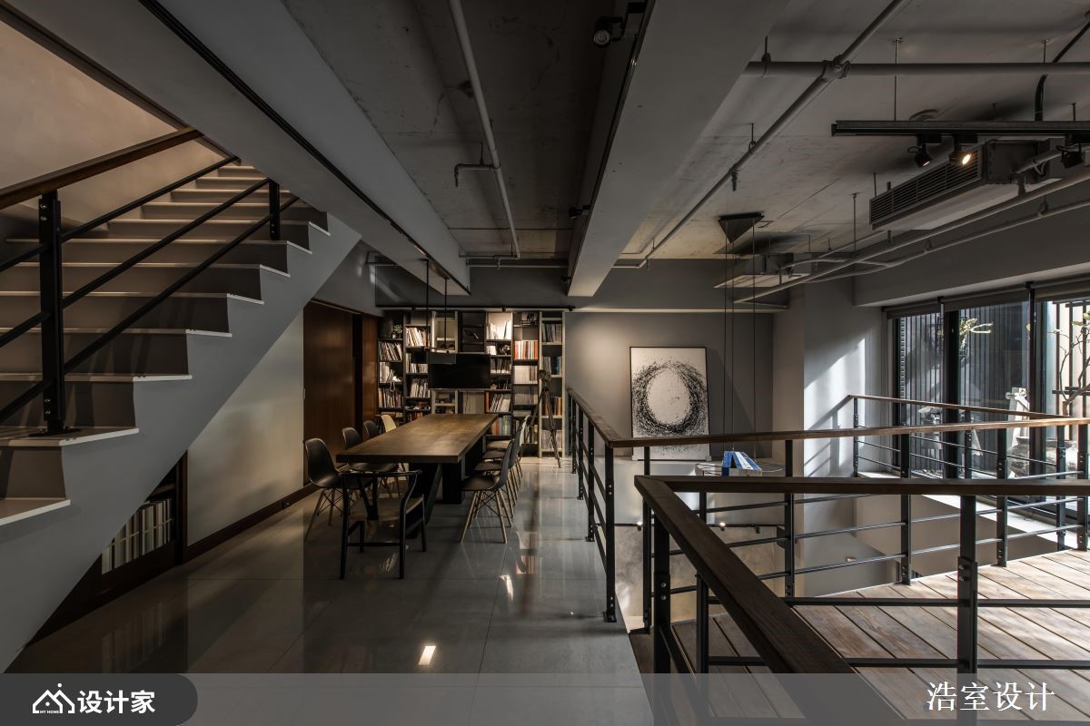设计师采以工业风格串连跃层空间,并定义鲜明的设计主轴,同时援引采光佳的特质,让充沛的户外光源大量引入室内,营造出清透质朴的空间之美,快跟着小编一起来看看吧!空间采以大量灰阶打底,形塑冷调性格,再适切勾勒木质、软件、家具等挹注温润质地,烘托空间温度的平衡与和谐;且善用线条的脉络,妆点窗面、立面或楼梯等处,呈现不同场域的精采变化,在粗犷工业风格中彰显细腻层次,而玻璃窗门的配置,则导引了美好绿意及采光入室,形塑流动开放的穿透视效;二楼打造会议室兼书房场域,安置长桌并规划收纳书柜,作为独立的讨论办公区块,并刻意将画作摆放于高处、形成端景装饰,形构强烈却不张扬的视觉焦点! 小编的最爱 二楼规划空中步道,链接到窗外的休闲区域,并善用大面窗景优势,融合格栅与植栽装饰,形塑带有和风感的细腻况味,替使用者围塑出可放松心情与欣赏美景的所在!